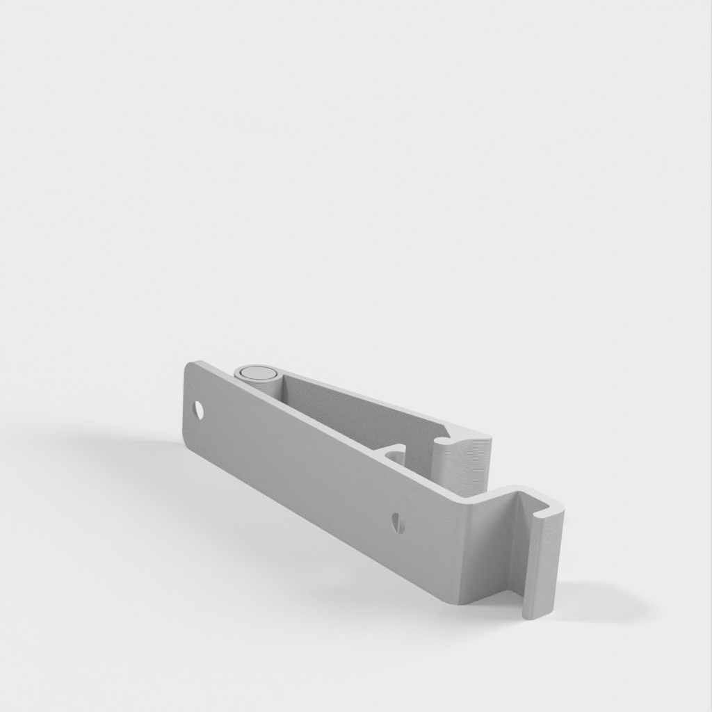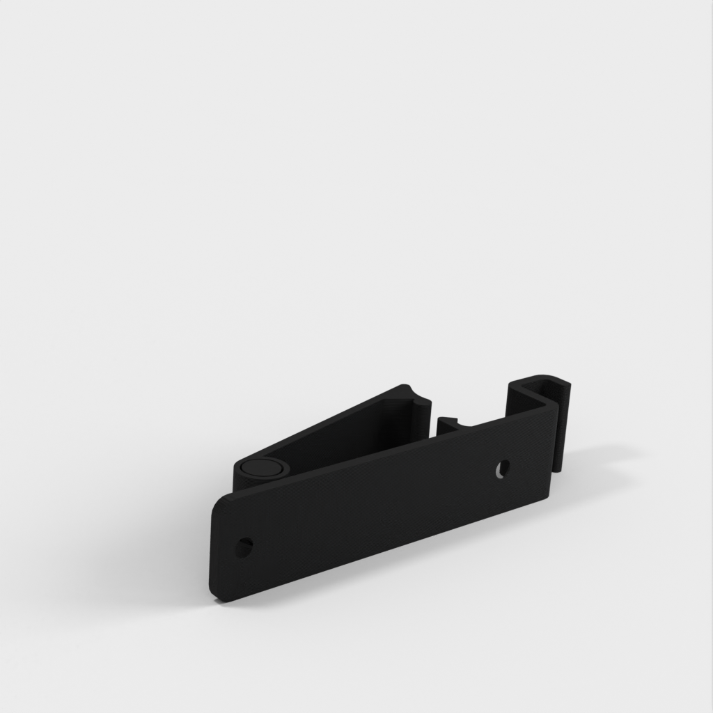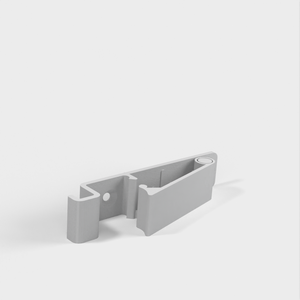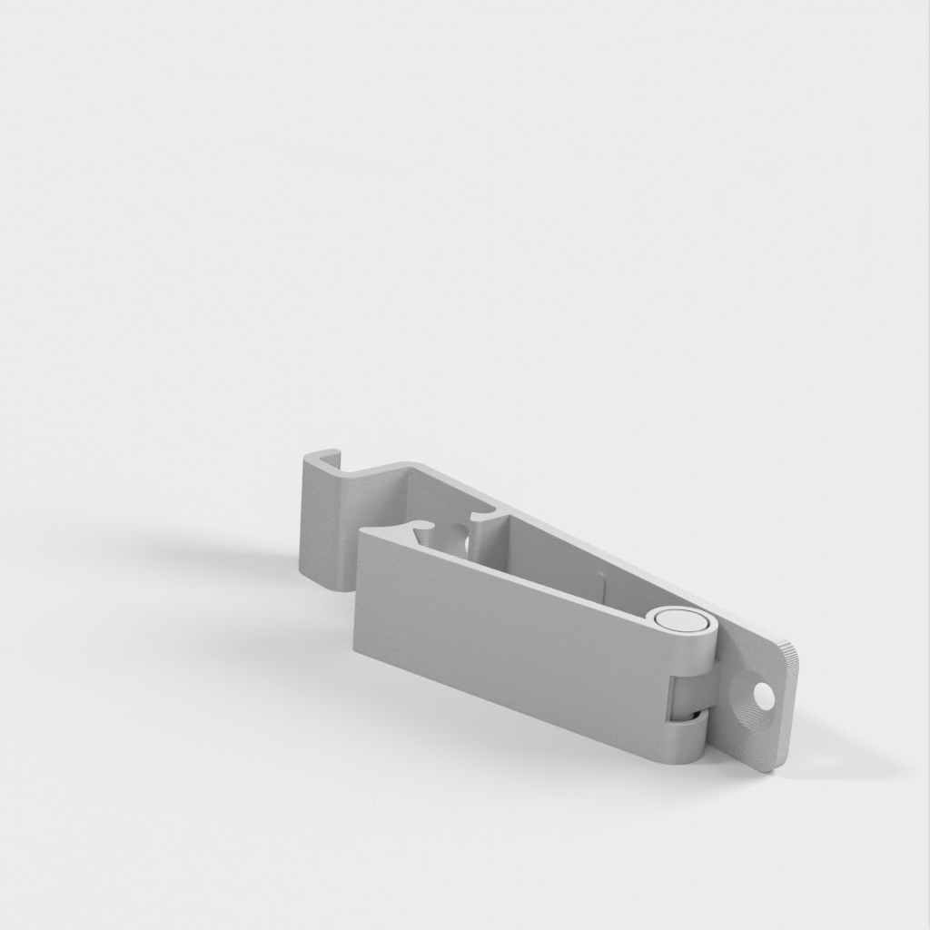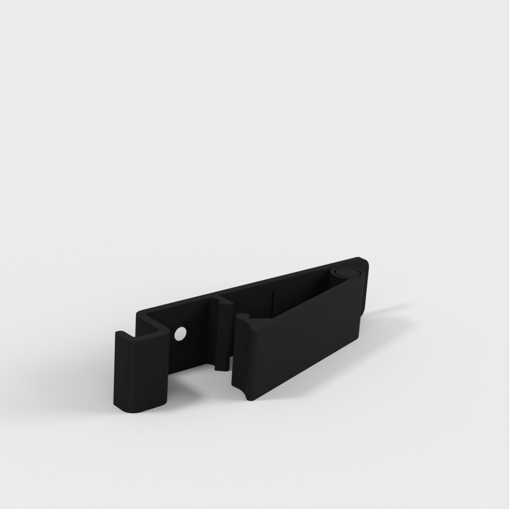 En kabelstyringsklemme designet til lettere udskrivning med ekstra fleksibilitet ved hængslet. Den indeholder en lille "krog" for kabler, der ikke skal klippes væk permanent (for eksempel en muskabel, der fjernes dagligt).