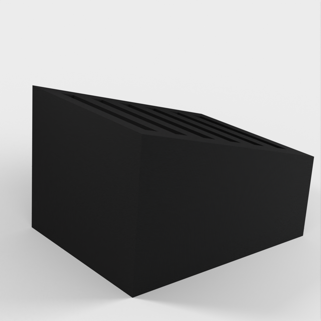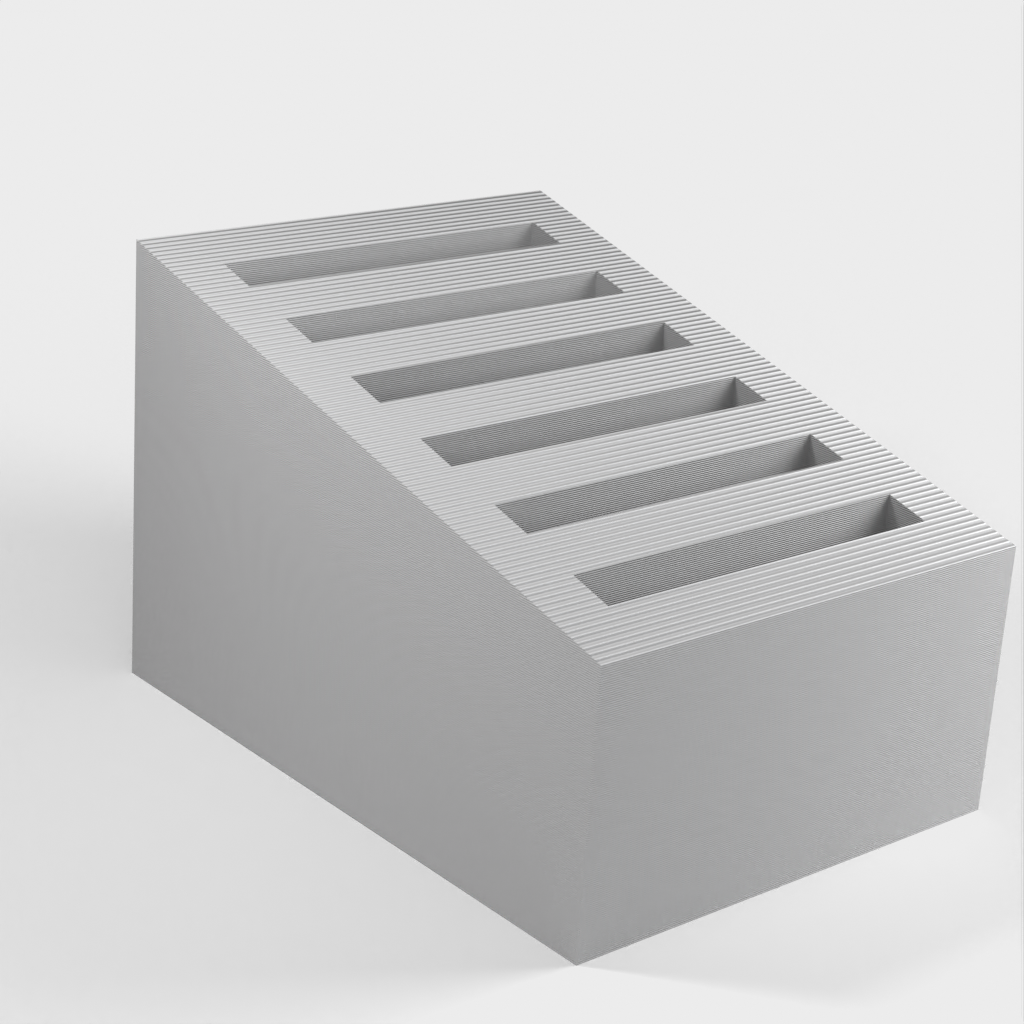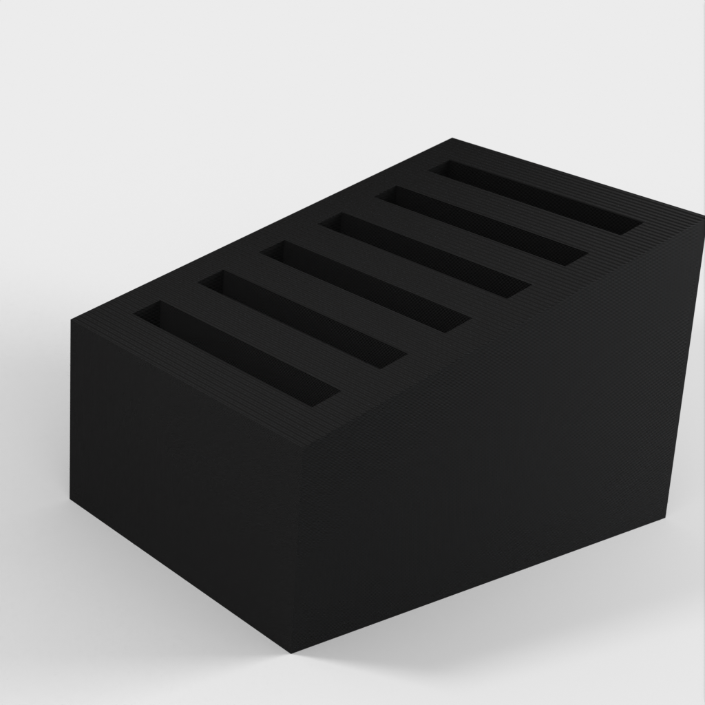 Parametric SD-kortholder er en opgraderet version af jpcw's SD-kortholder. Denne model kan tilpasses efter dine specifikke behov. Den primære parameter er antallet af slots, men du kan også justere størrelsen på slots for en hhv tættere eller løsere pasform. Yderligere justeringer som topvinklen fra for til bag eller kort adskillelsesafstanden kan også ændres.