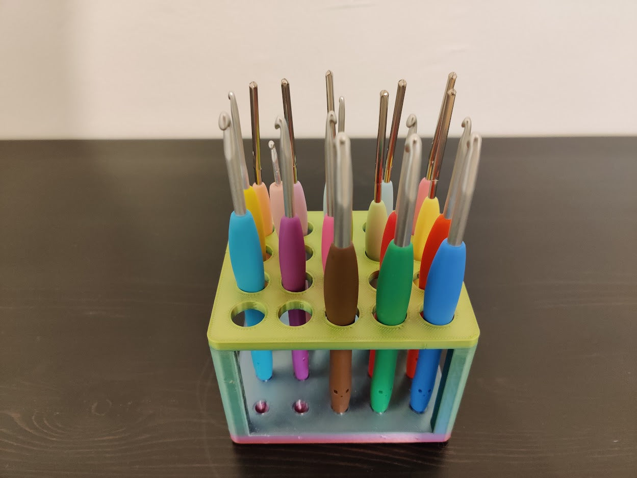 Organiser din arbejdsstation med denne smarte opbevaringsløsning til dine hæklenåle og penne. Dette praktiske holder er designet til at holde dine værktøjer sikkert på plads, så du nemt kan finde dem, når du har brug for dem. Det er den perfekte deskorganizer til både hobbystuderende og professionelle, der arbejder med garn og syting.