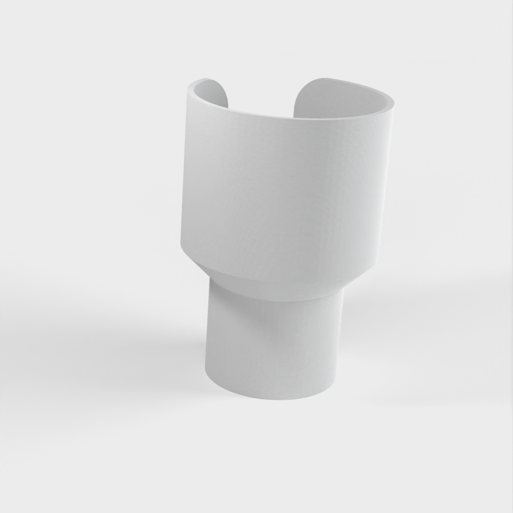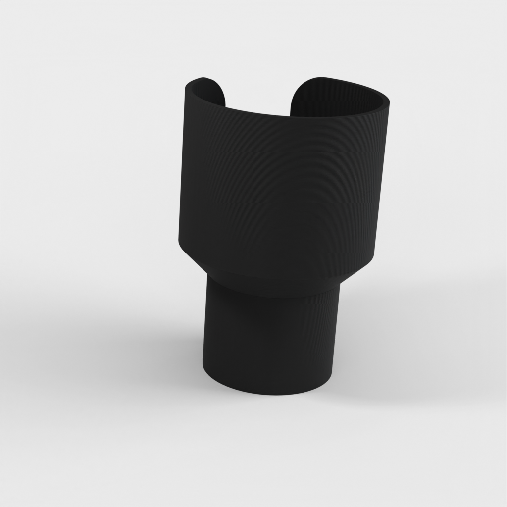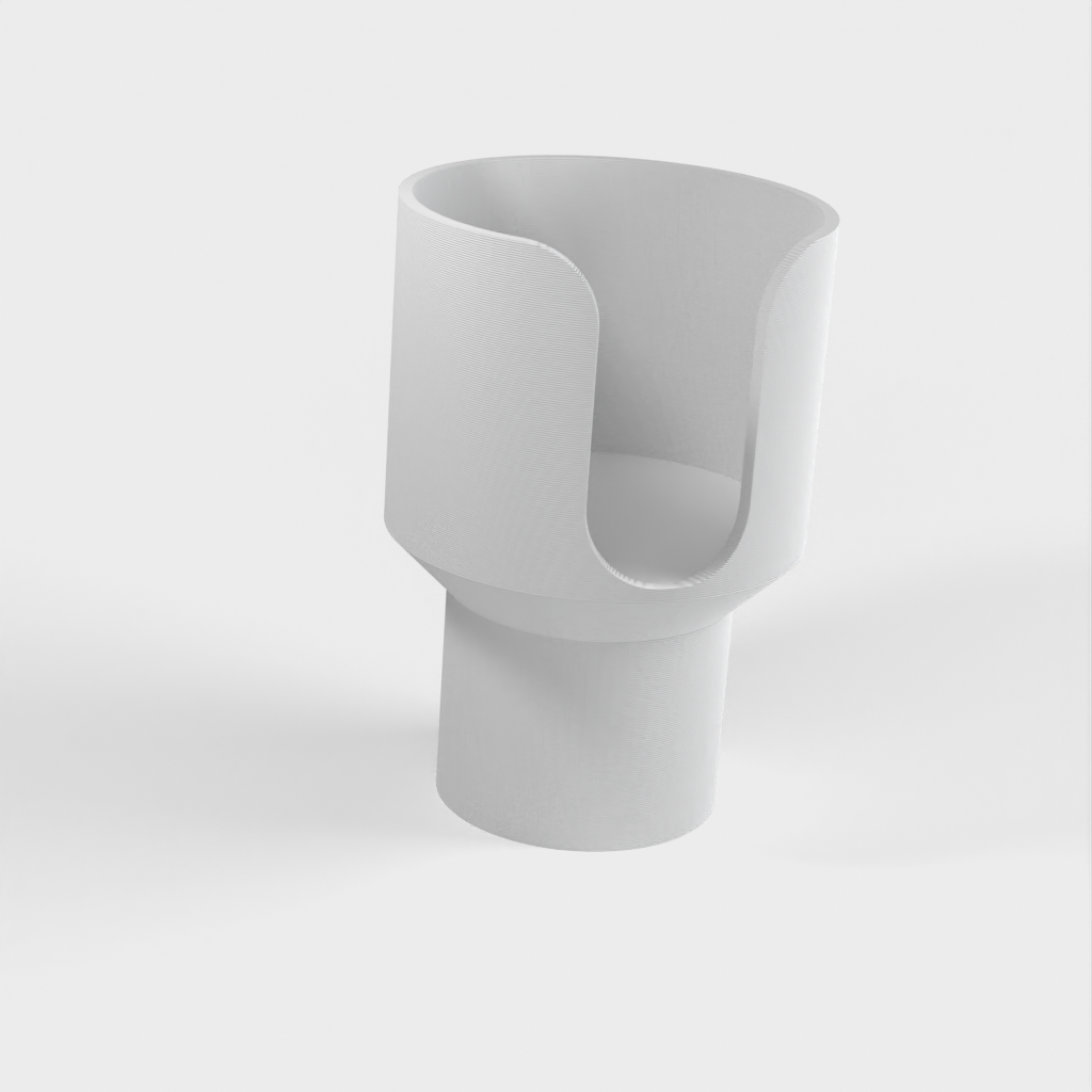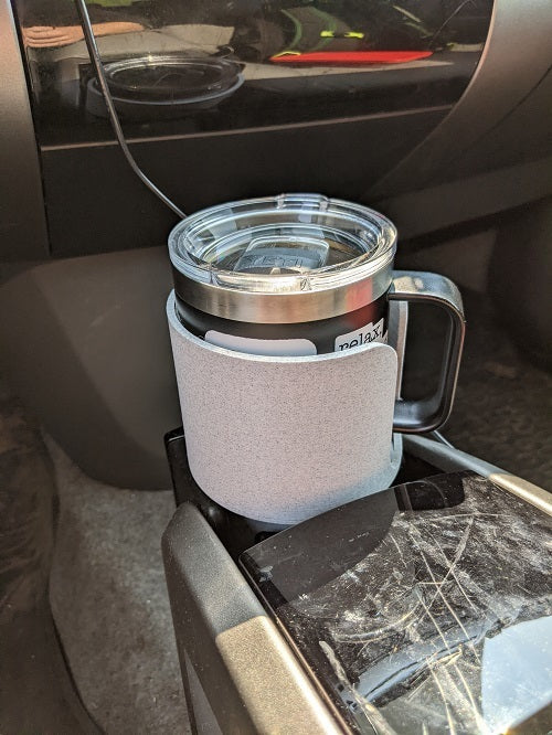 Dette er en kopholder-adapter, der får din kopholder til at passe til større kopper i din bil. Bunden, der glider ind i bilens kopholder, har en ydre diameter på 2,75", mens den tilpassede kopholder har en indre diameter på 3,75" (passer til eks. et Yeti-kaffekrus).