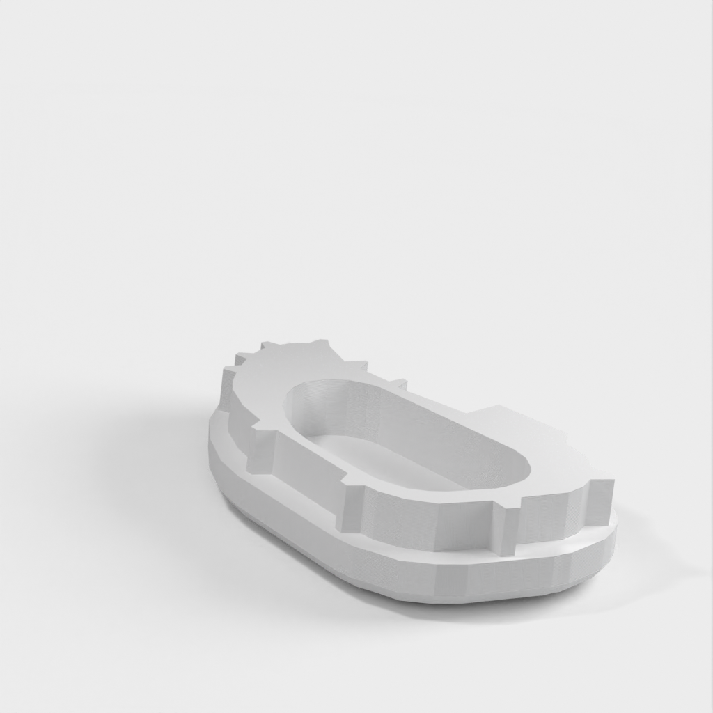 Udskiftelig endekappe til et Thule Euroclassic G5 908/909 og 928/929 cykelstativ til bil. Denne endekappe er designet til at erstatte tabte eller ødelagte endekapper, og garanterer en perfekt integration med stativets design og stil. Vi anbefaler at bruge PETG eller ABS materialer for at sikre holdbarhed, da PLA kan smelte under direkte sollys. Installationen er enkel ved blot at spejlvende .stl-filen i sliceren til den anden side.