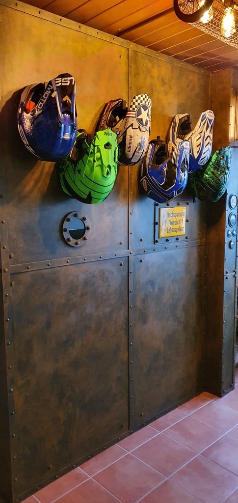 Denne vægmonterede hjelmholder er designet til effektivt at opbevare din hjelm, uanset om det er en motorcykelhjelm, en MX-hjelm eller en MTB full-face hjelm. Den giver en praktisk løsning til at holde dit udstyr organiseret og let tilgængeligt. Ved at montere hjelmholderen på væggen kan du spare værdifuld plads i dit garage, værksted eller boligområde, samtidig med at din hjelm præsenteres pænt. Det enkle design sikrer, at din hjelm sidder sikkert, og er klar til brug, når du skal ud på næste eventyr.