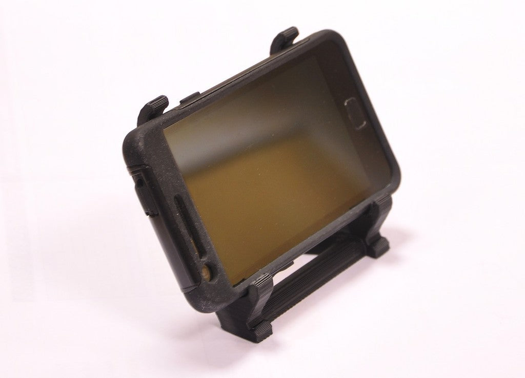 En robust telefonholder, der passer perfekt til Galaxy S2 udstyret med et Otter-etui. Denne holder er designet til at rumme telefon i sin større, mere beskyttende etui – deraf navnet 'fat case phone-stand'. Holderen sørger for at din telefon er sikkert anbragt, selv med det tykkere etui på.