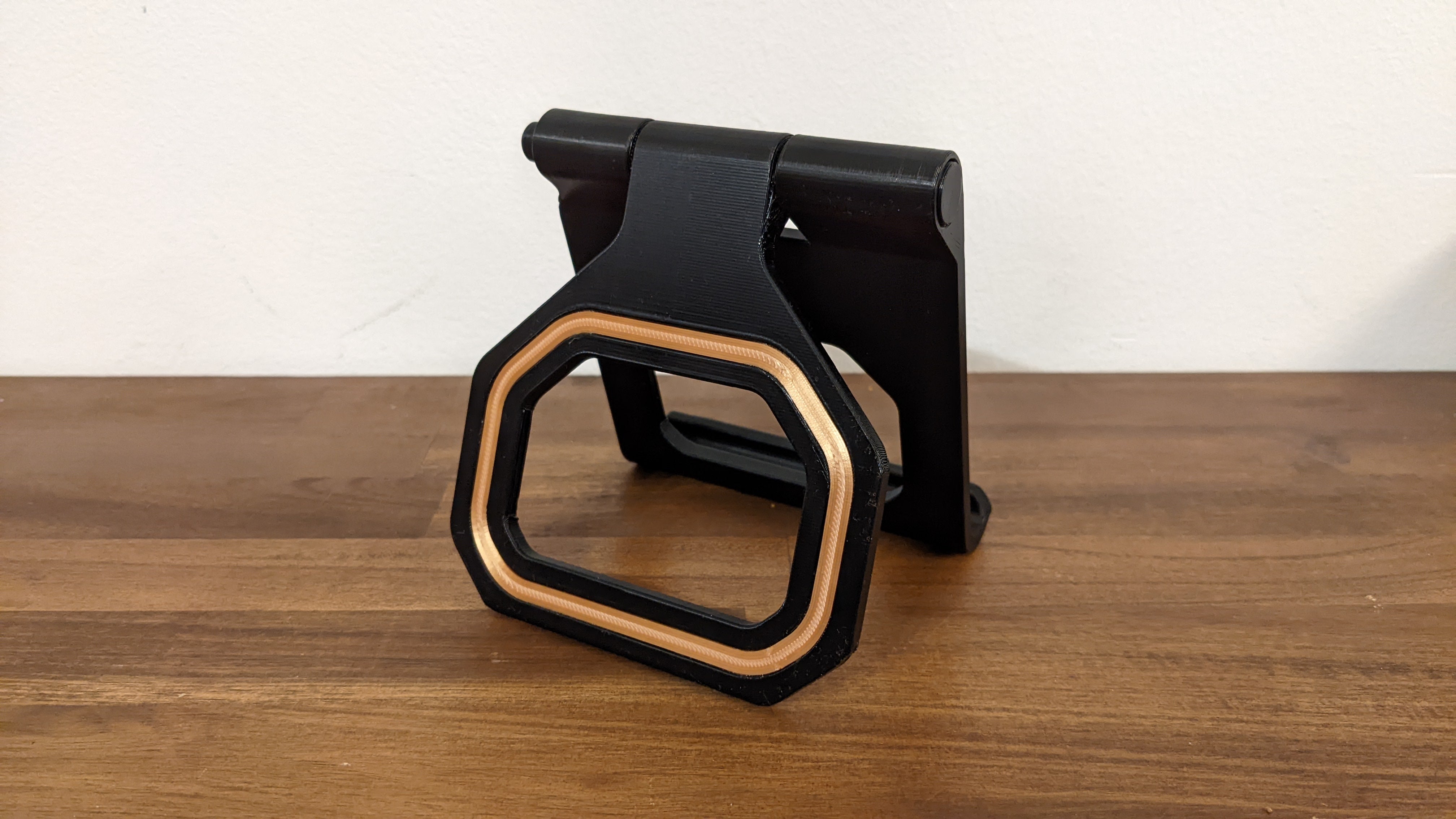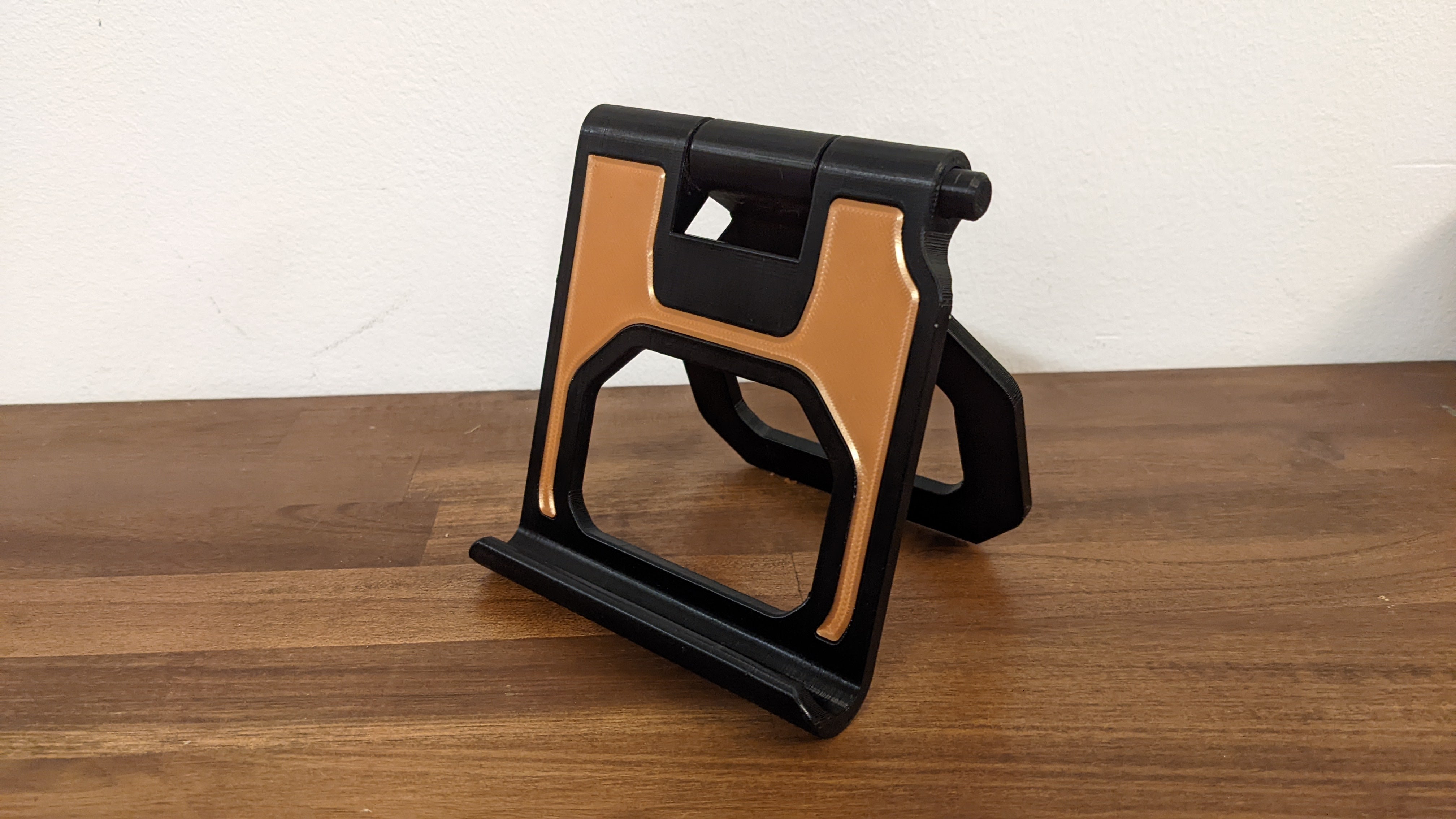 Justérbar tablet/telefonstativ med trykknapindstilling. Denne stand kan udskrives, og er perfekt til at holde din iPad, iPhone, eller enhver anden tablet eller mobiltelefon. Stativet har en indbygget trykknapindsstilling funktion, der gør det nemt at justere vinklen på din enhed, hvilket skaber en komfortabel visningsoplevelse. Uanset om du ser videoer, læser eller brows der på din enhed, gør dette produkt det nemt og bekvemt at gøre.