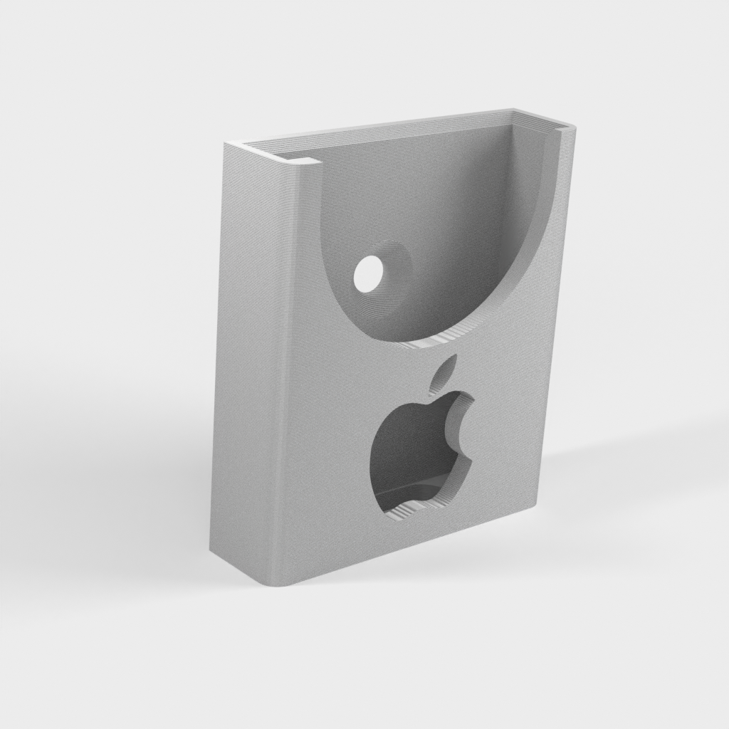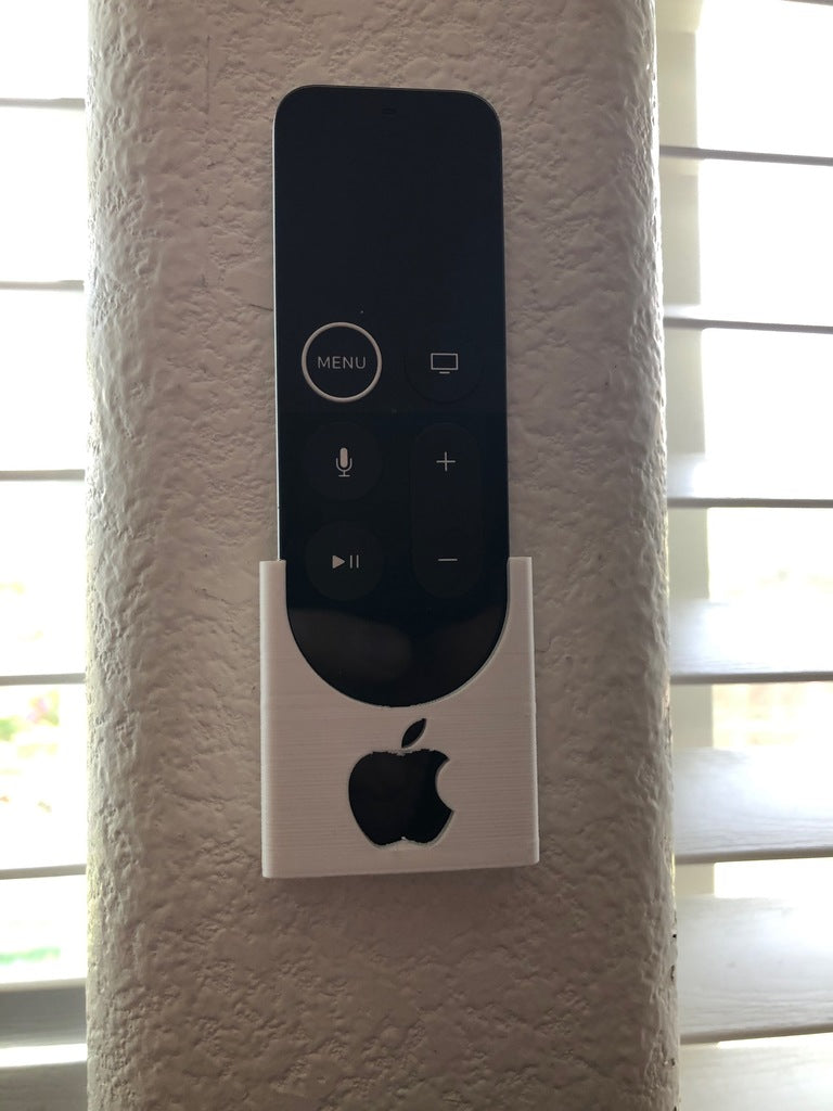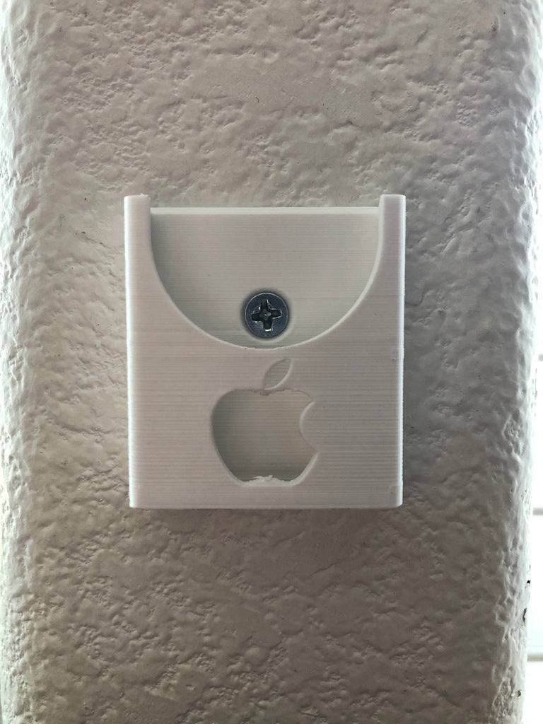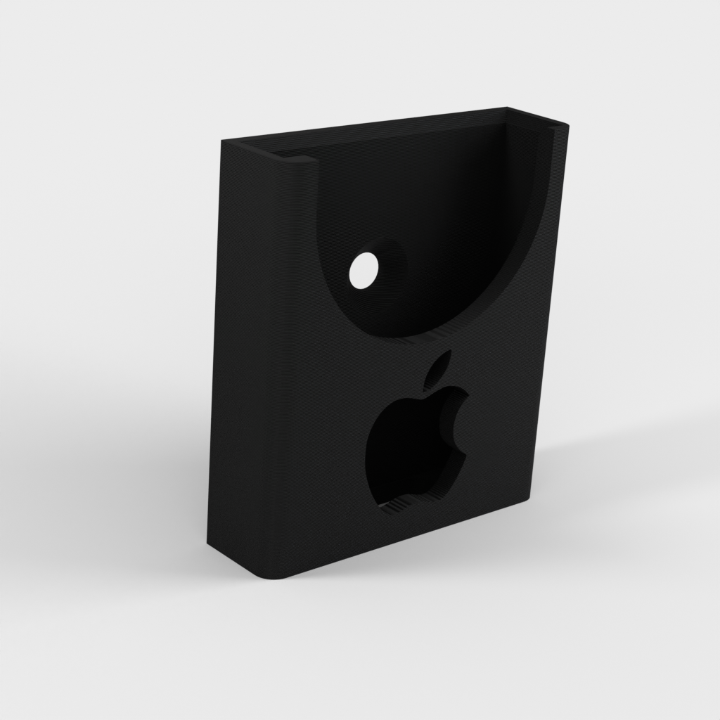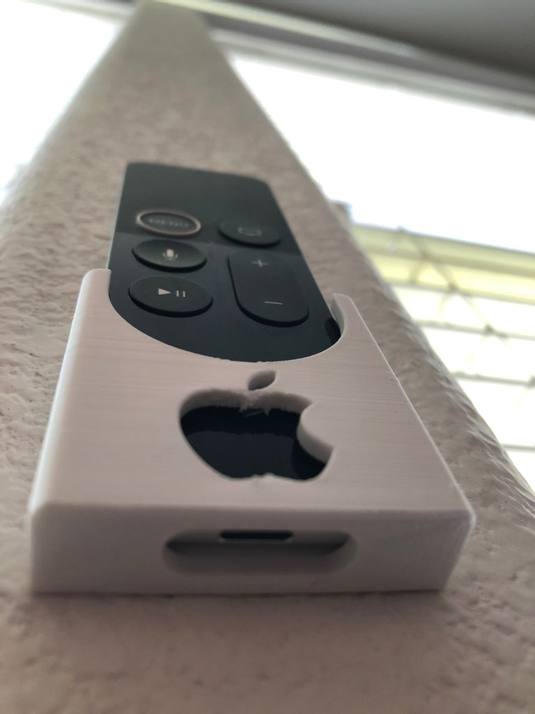 Apple TV-fjernbetjeningsholder til brug med "Seri Remote". Den giver dig .02" clearance foran og bagved. Der er også en åbning til opladningskabelen nedenunder. Denne holder sørger for, at fjernbetjeningen altid er på ét sted, så du aldrig mister den igen. Den kan nemt fastgøres til væggen, og dens kompakte design gør, at den ikke optager meget plads.