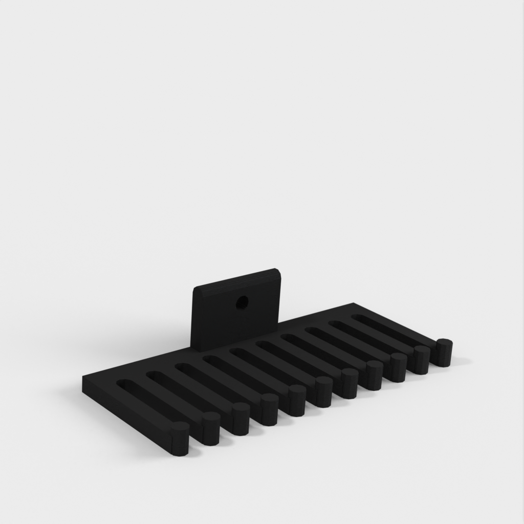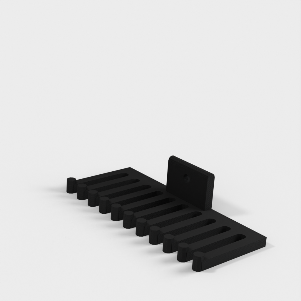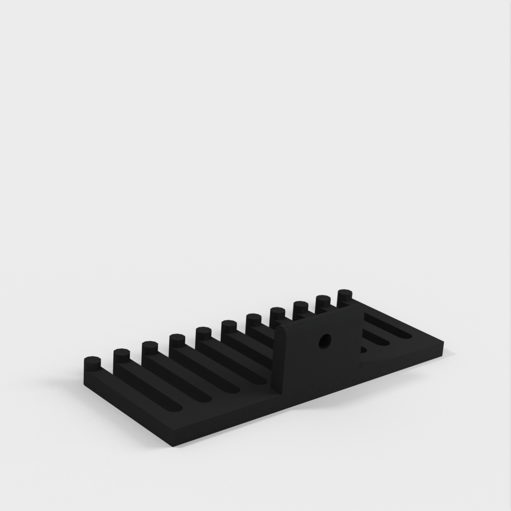 Holder til kabler, der kan fastgøres med en skrue. Kabel holderen har form som en kam, hvor antallet af kams tænder, højde, bredde osv. kan tilpasses efter behov. Mange forskellige kabler kan organiseres nemt for at skabe en ryddelig arbejdsflade.