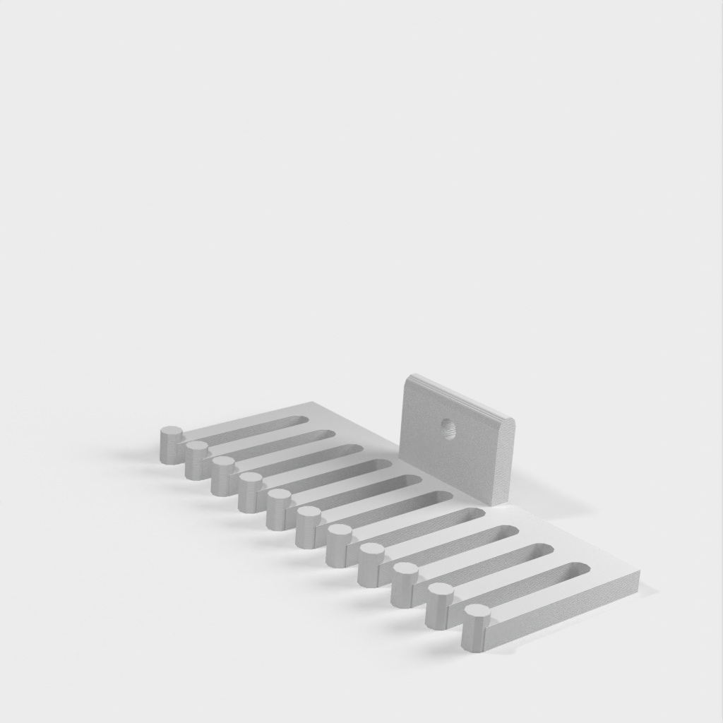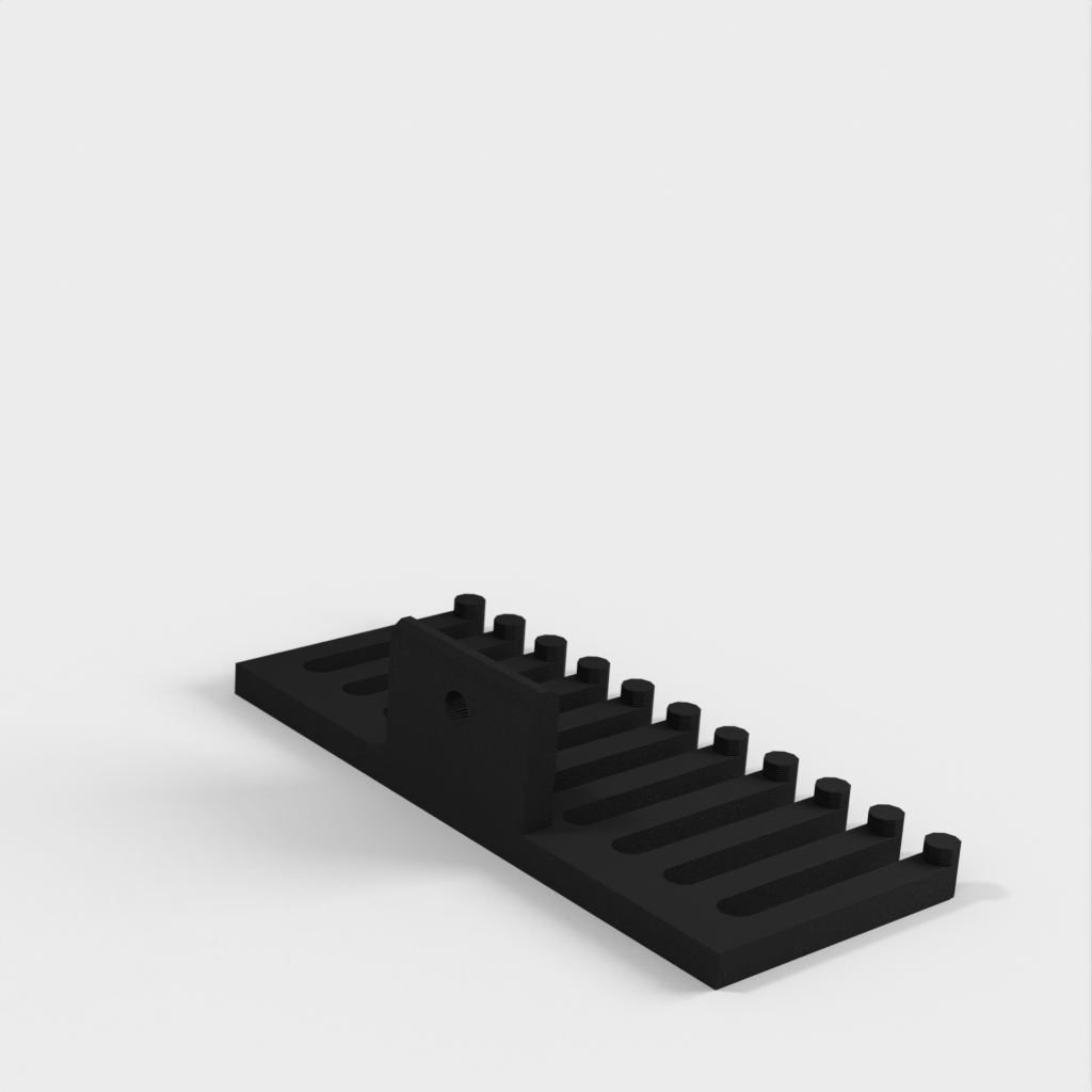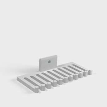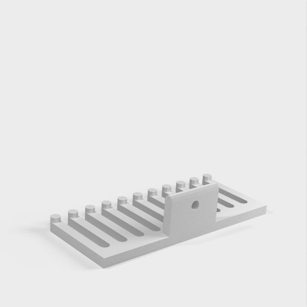 Holder til kabler, der kan fastgøres med en skrue. Kabel holderen har form som en kam, hvor antallet af kams tænder, højde, bredde osv. kan tilpasses efter behov. Mange forskellige kabler kan organiseres nemt for at skabe en ryddelig arbejdsflade.