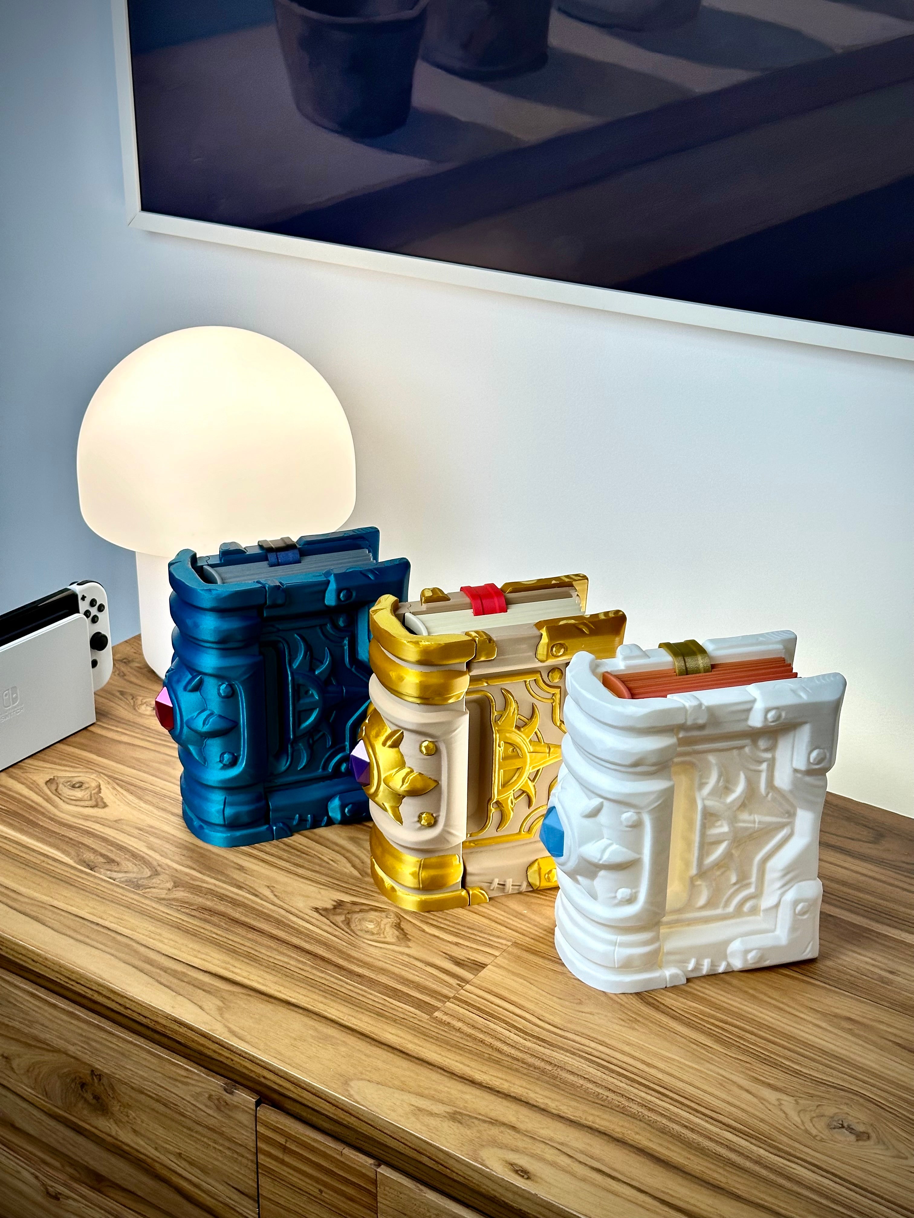 Denne unikke spilkasse beskytter dine Nintendo Switch spil, mens den tilføjer et fantasy-element til din opsætning. Designet som en korsfarerens bog, passer den perfekt på hylden blandt andre bøger. En stilfuld opbevaringsløsning for fans af Zelda og Warcraft.
