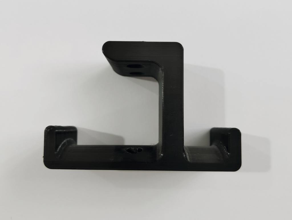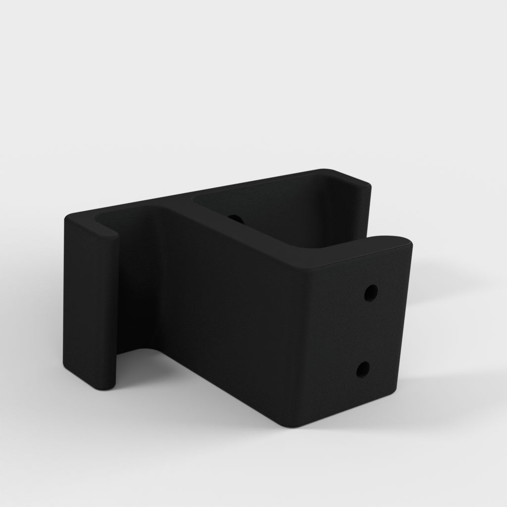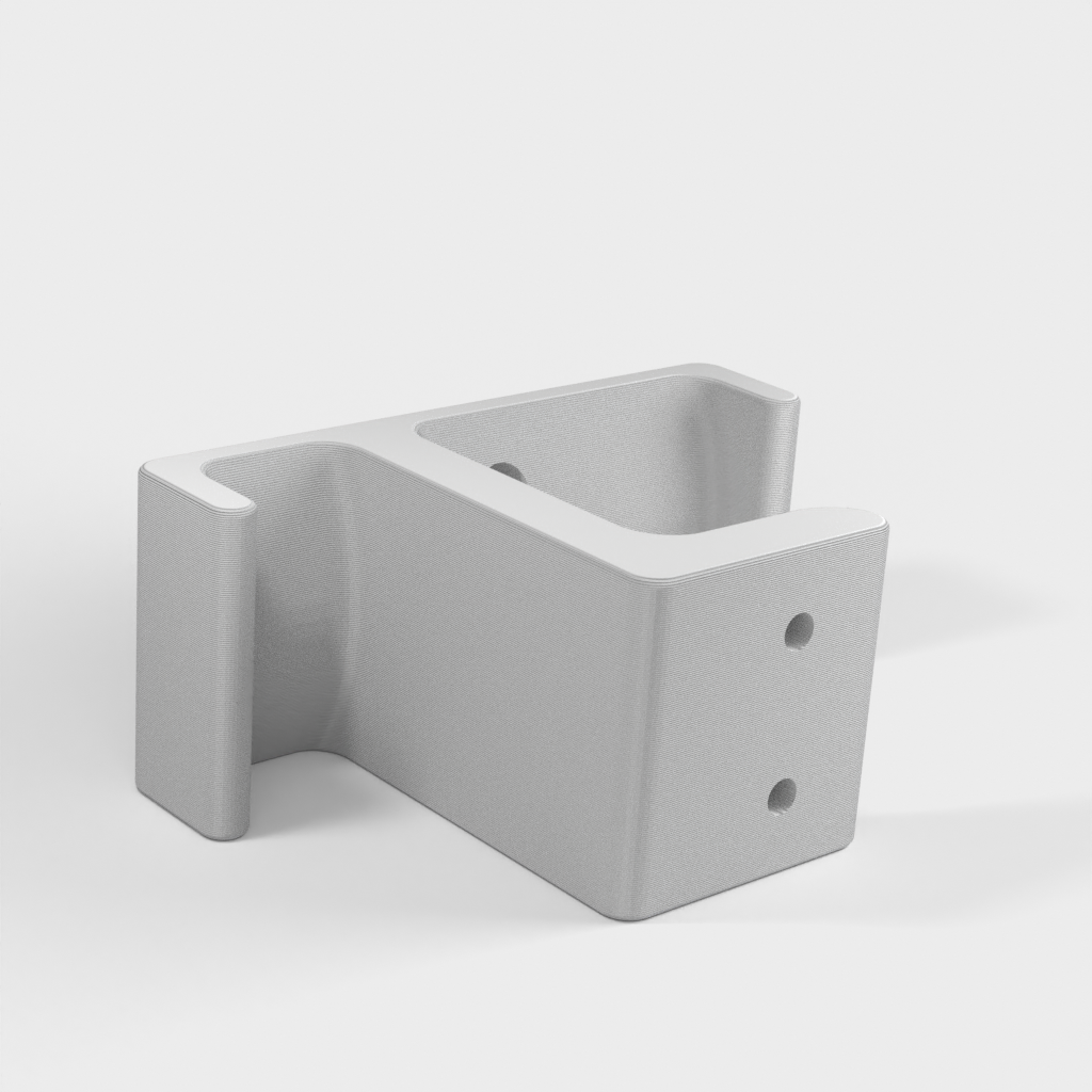 Dette er en holder, jeg har designet til et headset. Du kan skrue eller klistre denne holderen under bordet. Holderen foldes ud fra to hooks, en til headsettet og en til kablet. Holderen er meget stærk, så du behøver ikke bekymre dig om dine hovedtelefoner. For at fastgøre denne holder under bordet, brug en M4-skruetrækker for træ.