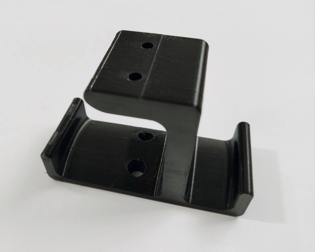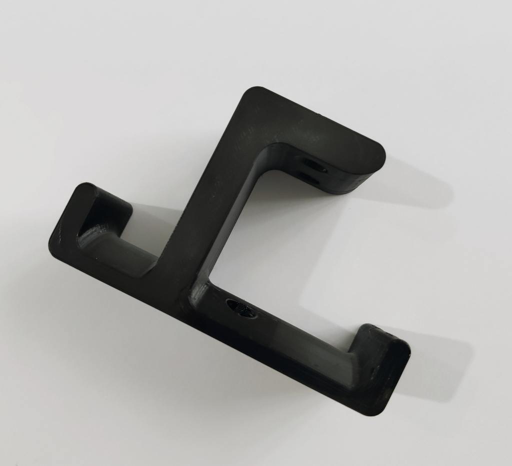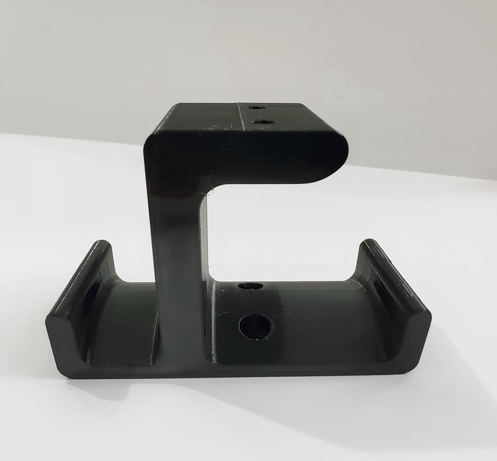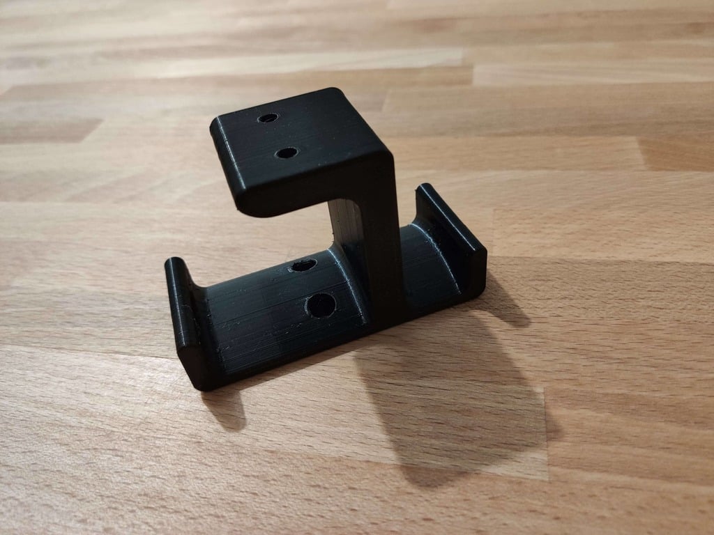 Dette er en holder, jeg har designet til et headset. Du kan skrue eller klistre denne holderen under bordet. Holderen foldes ud fra to hooks, en til headsettet og en til kablet. Holderen er meget stærk, så du behøver ikke bekymre dig om dine hovedtelefoner. For at fastgøre denne holder under bordet, brug en M4-skruetrækker for træ.