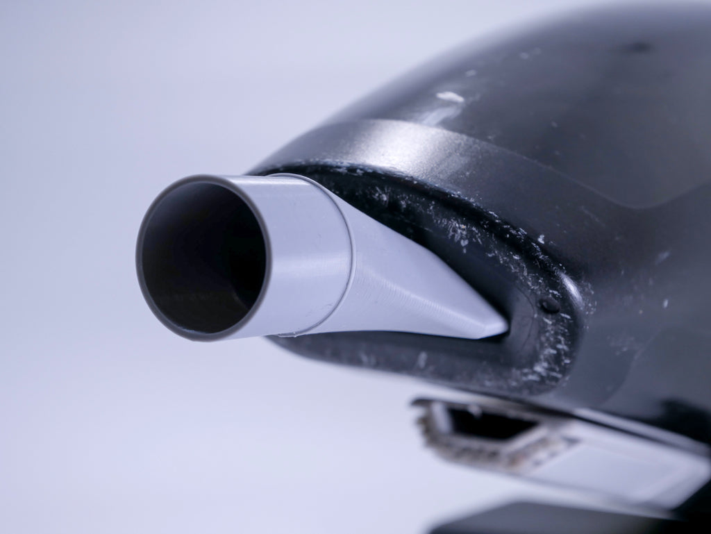 Adaptor til en Ryobi ONE+ ledningsfri støvsuger så den kan benytte slangen fra Ryobi 18V ONE+kompressoren til at nå svært tilgængelige steder.