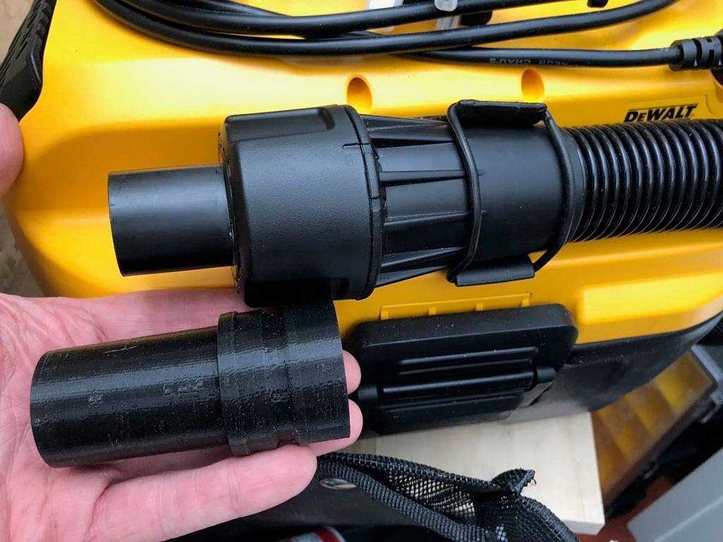 En adapter fra DeWalt Airlock til 35 mm. Dette produkt er designet til at tilslutte din DeWalt DCV584L vakuum til dit Festool guide rail plunge sav. Den standard Airlock-adapter slutter i en 32mm spigot, som blot rasler rundt i 35mm porten på saven, men Denne adapter løser problemet effektivt.