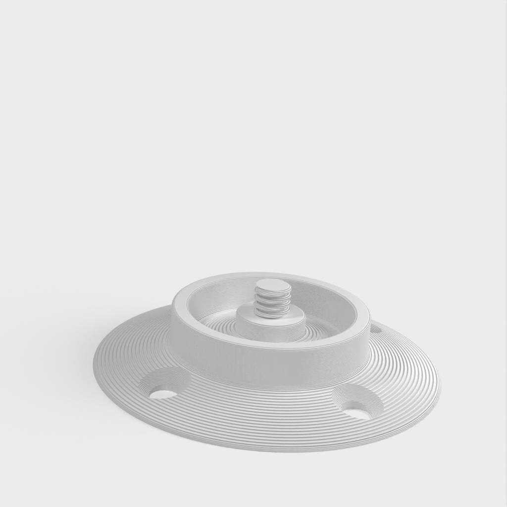 Den monteres med 4 skruer (medfølger ikke) ovenpå pælen og regnmåleren kan derefter skrues ned i midften af holderen.