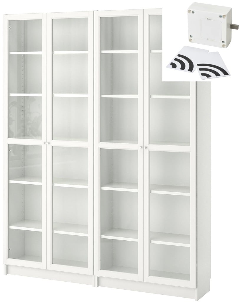 Sikkerhedslås til Ikea Billy/Oxberg reolen, udstyret med en Rothult NFC-lås.