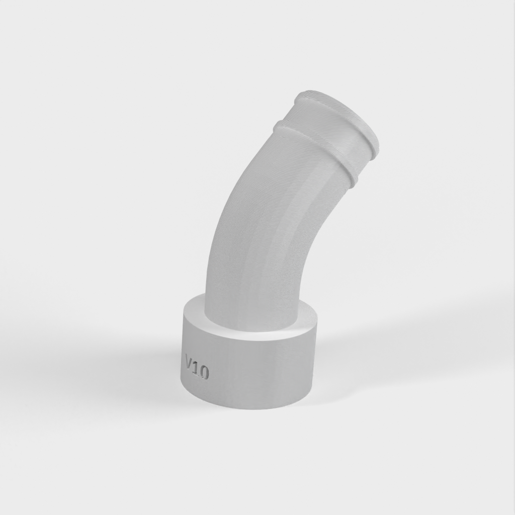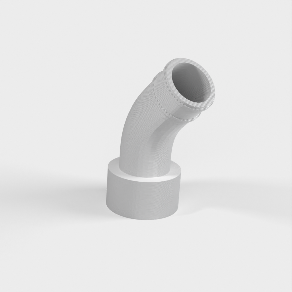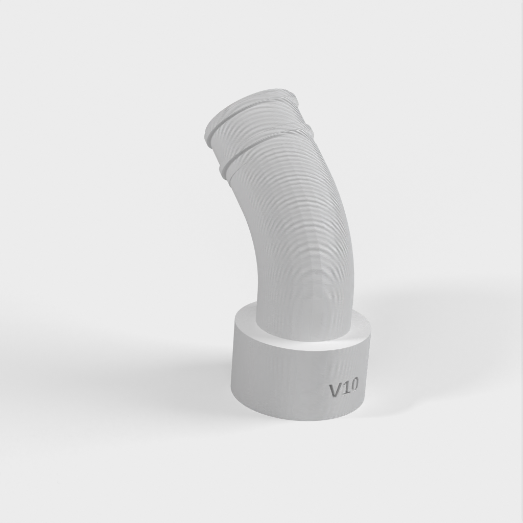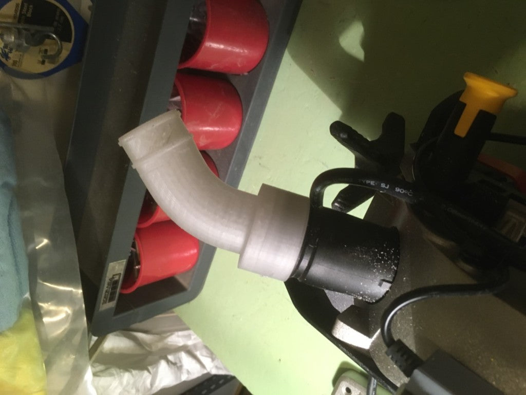 Ved senere brug af koblingen opdagede jeg, at et problem kunne opstå, hvis der ikke var tilstrækkelig plads bag saven til den stive del af støvsugerslangen. For at løse dette har jeg redesignet det med en bøjning, så det kan parres direkte til den fleksible slange og omgå den stive del.