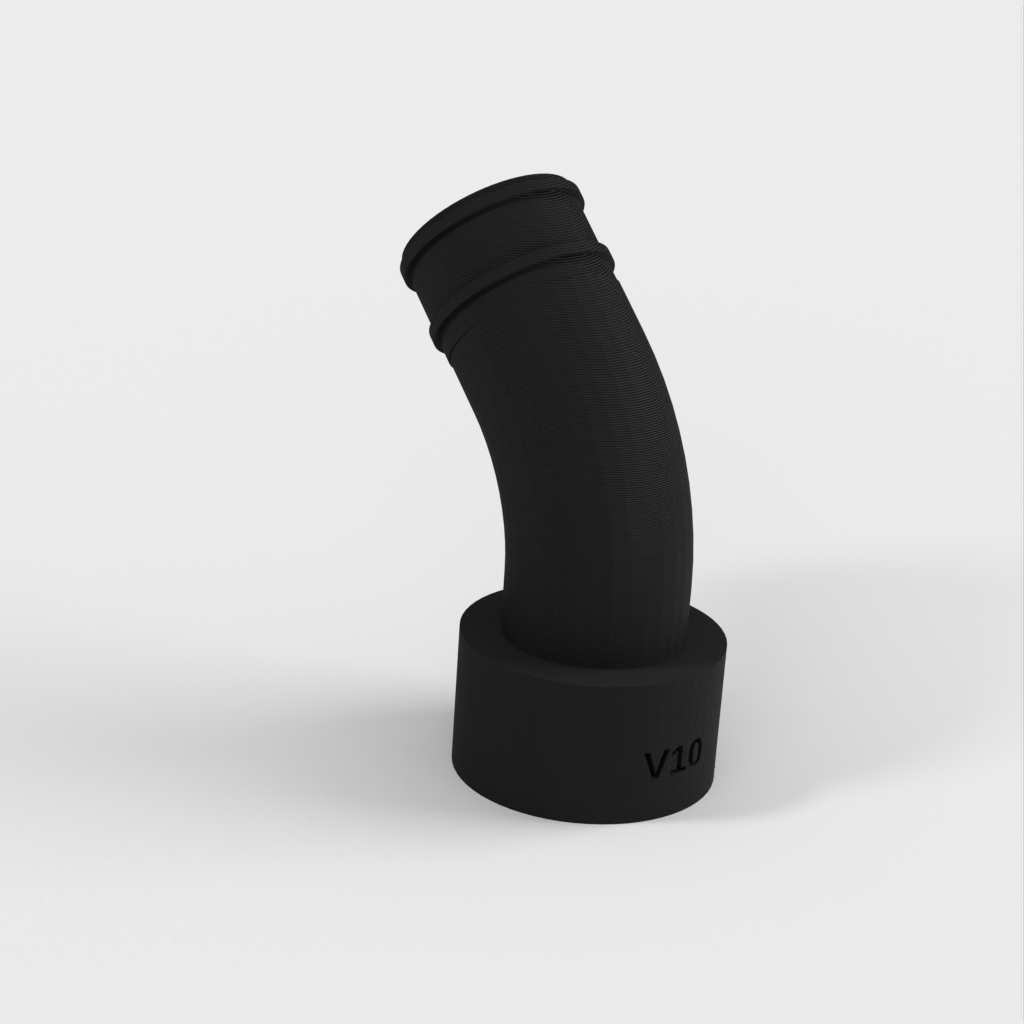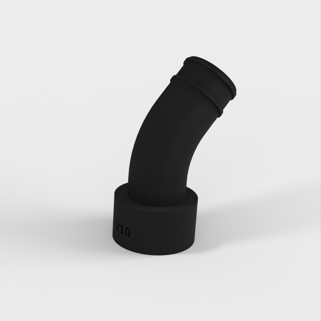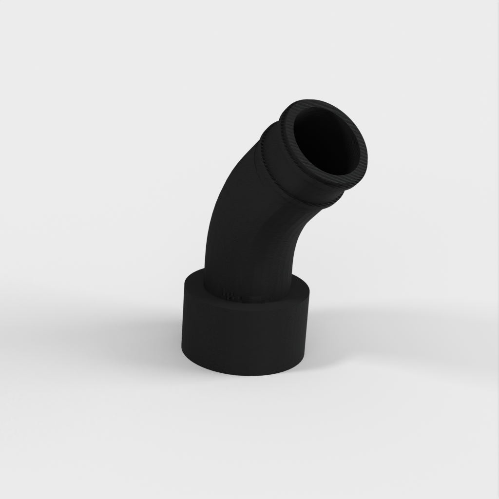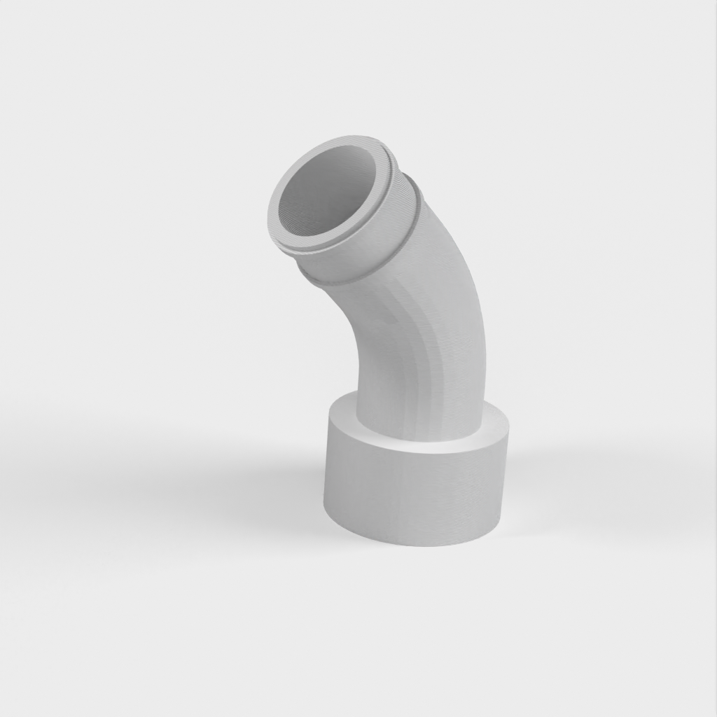 Ved senere brug af koblingen opdagede jeg, at et problem kunne opstå, hvis der ikke var tilstrækkelig plads bag saven til den stive del af støvsugerslangen. For at løse dette har jeg redesignet det med en bøjning, så det kan parres direkte til den fleksible slange og omgå den stive del.