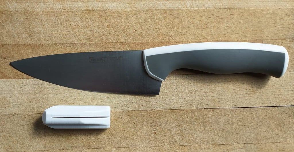 Det er designet til at passe til de fleste knivgeometrier, så længe bladet ikke overstiger en tykkelse på 1,8 mm. Hvis din kniv har et tykkere blad, kan du justere håndtagets størrelse. Håndtaget kan nemt fjernes ved at dreje det rundt om spidsen, hvilket gør det enkelt at opbevare eller bruge uden.