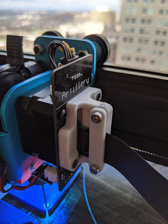 Uanset hvilken filamentfarve du vælger, såsom glow in the dark blå PLA, vil dette bracket være et praktisk og nyttigt supplement til din Artillery Sidewinder x1 printer. Forbedr din maskine og få bedre printkvalitet med dette effektive kabelklemmebracket.