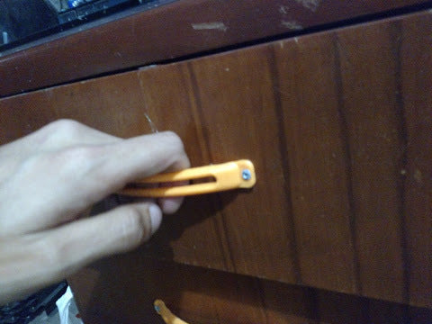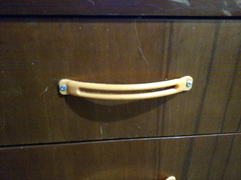 Enkel skuffehåndtag til gamel møbler. Denne simple håndtag kan nemt fastgøres til dit bord eller skab med popnitter, hvilket muliggør en lethed når det kommer til at trække dine skuffer ud. Ingen skruer kræves.