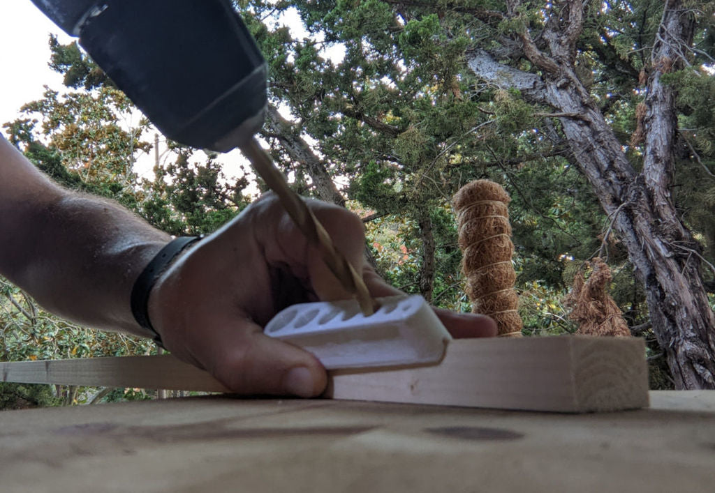 Husk at holde fast, mens du borer - vi vil ikke have nogen der smadrer fingrene, fordi de mistede koncentrationen og boret blokerede.
