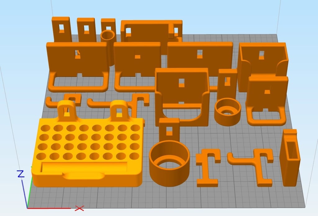 Dette er min samling af Ikea Skådis kroge, inspireret af CSD Salzburg kollektionen. Inkluderet her er holdere til forskellige værktøjer, såsom boremaskiner, foldemål, hex nøgler, tænger, skruetrækkere, Bosch Zamo, blyant, og skalpel. Yderligere inkluderet er en universel krog til alle holdere og kroge af tre forskellige længder. Holdere er kompatible med CSD Salzburg universelle kroge.