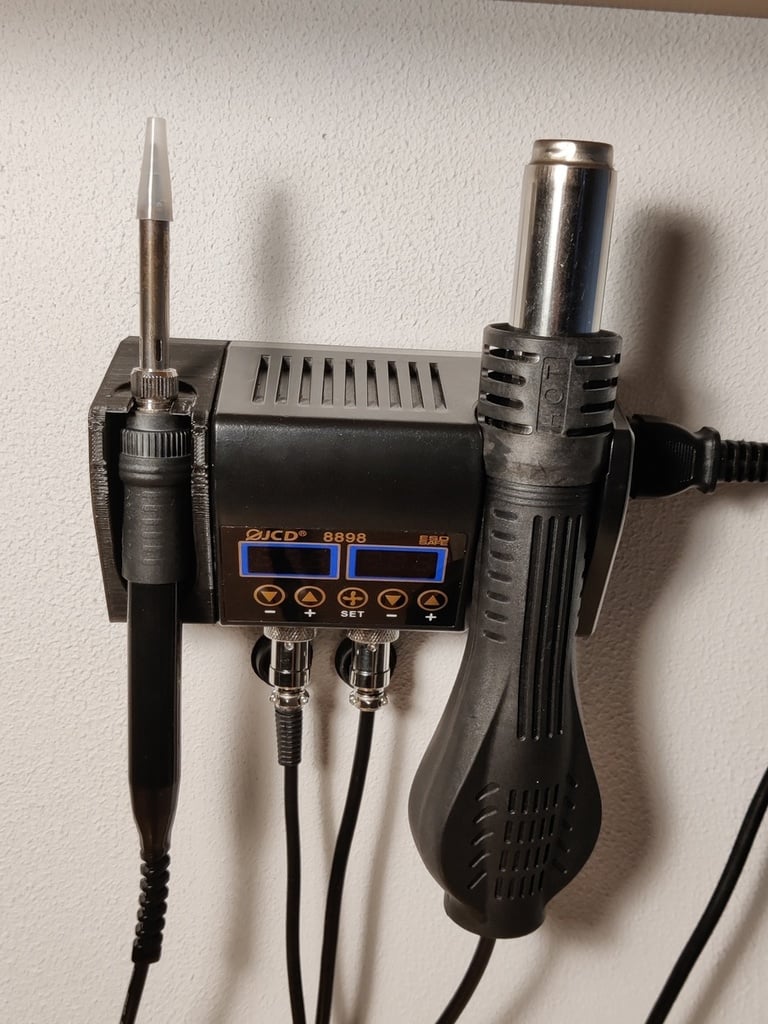 Holder til JCD 8898 loddekolbe fra SMD rework-station. Den klikker på bunden af stationen og passer flot på siden af stationen. Loddekolben passer godt i slidsen og falder ikke ud.
