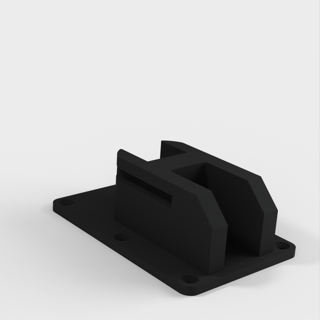 Simpelt væg- og loftophæng til et Milwaukee M18 værktøj. Ophænget benytter hullet til batteriet og værktøjet sættes derfor nemt op på ophænget.