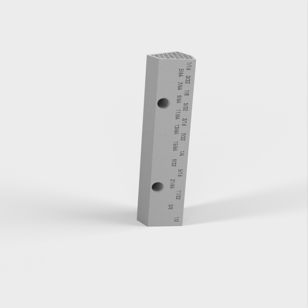 Dette er en kompakt, vægmonteret borebitsholder til bits i størrelserne 1/16" til 1/2" i 1/64" stigninger. Holderen måler 8" i længden og holder bits i en 30º vinkel for hurtig og nem adgang. For mindre bitstørrelser (1/16" til 3/16") er der to spor, så du kan have en ekstra bit i nærheden, hvis en går i stykker. Bag bitsene er der en nedsænket bakke til opbevaring af penne, blyanter eller endda yderligere bits, som du bruger under et projekt.