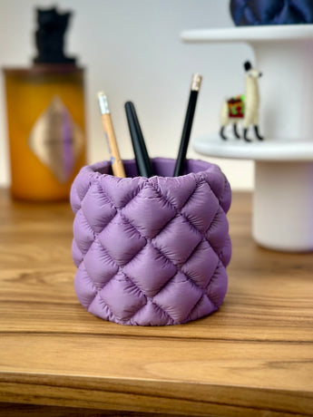 Denne Air Hugger blyantkop tilføjer et moderne touch til dit skrivebord. Det unikke, oppustede diamantmønster giver et blødt udtryk, mens dine penne og blyanter holdes organiseret. Perfekt som en dekorativ opbevaringsløsning eller endda som en lille potteskjuler til din arbejdsplads.