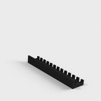 12-spor lille kabelholder er designet til nemt at montere på siden af dit arbejdsbord for at holde mindre kabler som USB-kabler. Det er 125mm langt med 12 5mm brede spor. Enderne har en 4mm forhøjet bit for at hjælpe med at holde kablerne fra at glide af.