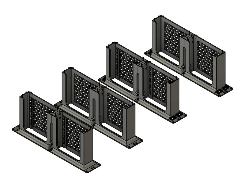 Dette 19-tommer rackbeslag organiserer to Minisforum MS-01 enheder i dit serverrack. Designet understøtter varmebestandigt materiale som PETG for sikker drift. Der findes versioner med plads til gummifødder eller keystone-stik for optimal kabelstyring. Montering kræver M5 møtrikker og skruer for stabil installation.