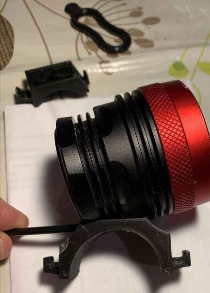 Dette er et håndtagsfæste til forskellige almindelige CREE - XML - T6 osv. cykellygter, som er tilgængelige fra en populær auktionsside og andre steder.