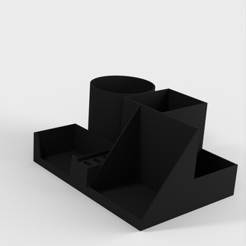 Dette er en 3D printet skrivebordsorganisator, der fungerer som et funktionelt redskab designet til at holde en mobil, penne, blyanter eller markører, vedligeholdelsesværktøjer, flashdrives og visitkort. Holder dit skrivebord organiseret og ryddeligt.