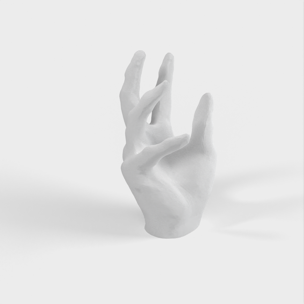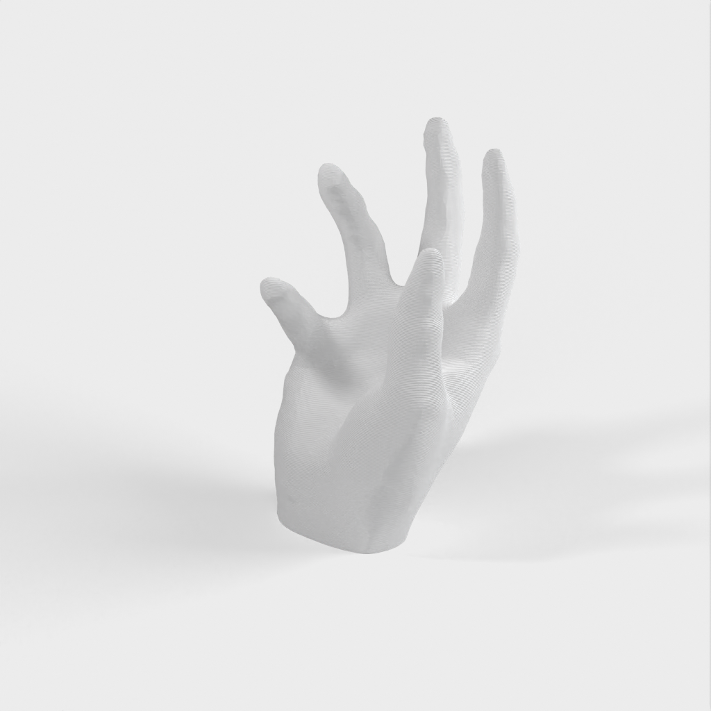 iPhone-hånd er en perfekt løsning til opbevaring af din smartphone på skrivebordet. Denne 3D-scannede kopi af en hånd er designet til at holde din iPhone eller enhver anden smartphone. Den er udformet for optimal udskrivning uden supportmateriale.