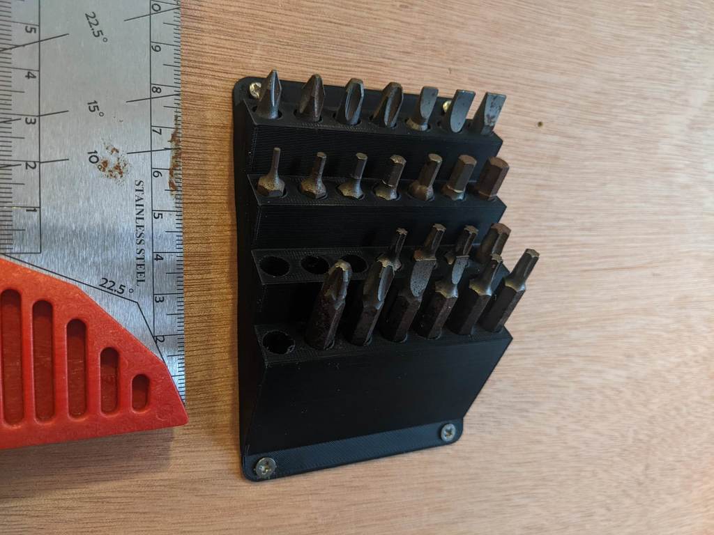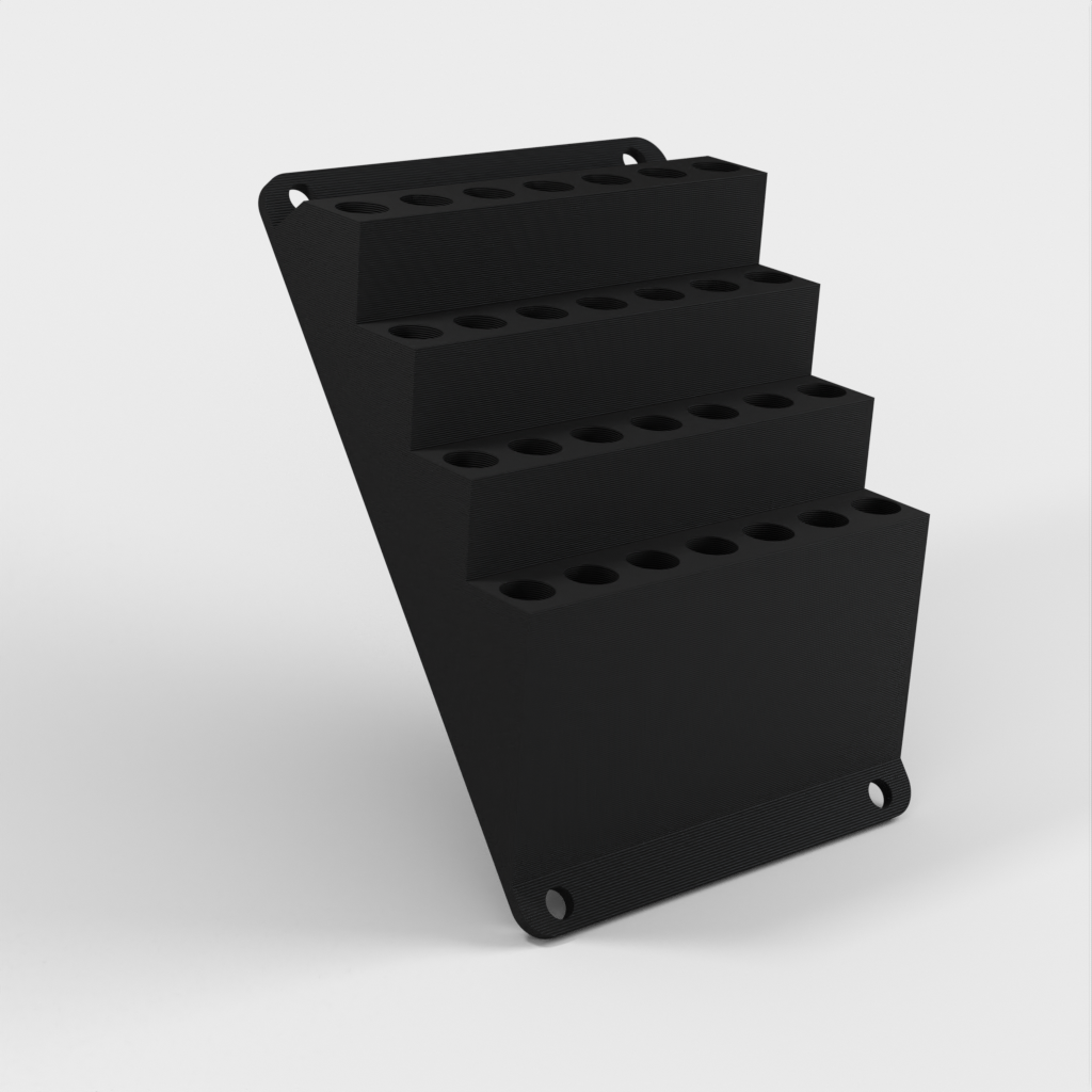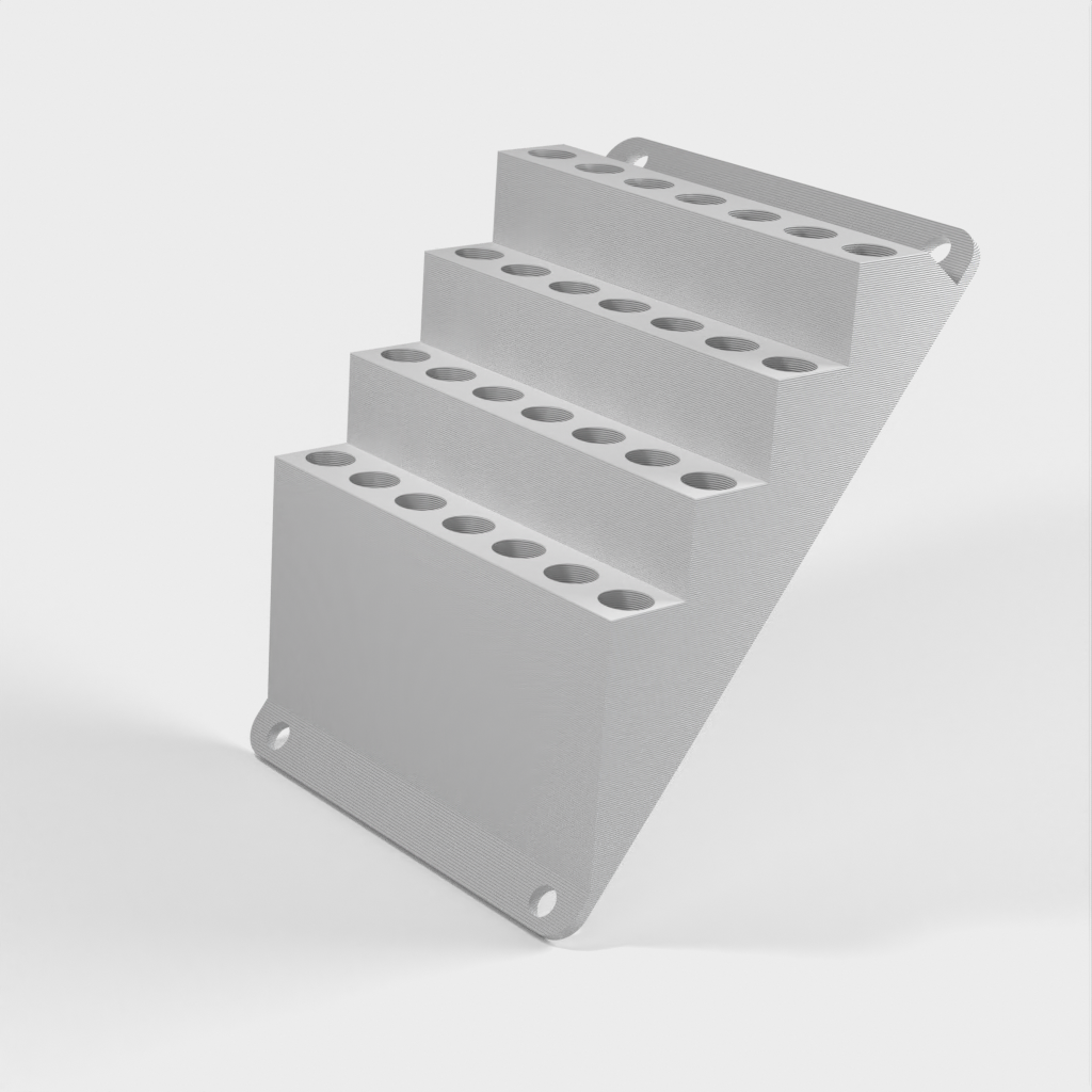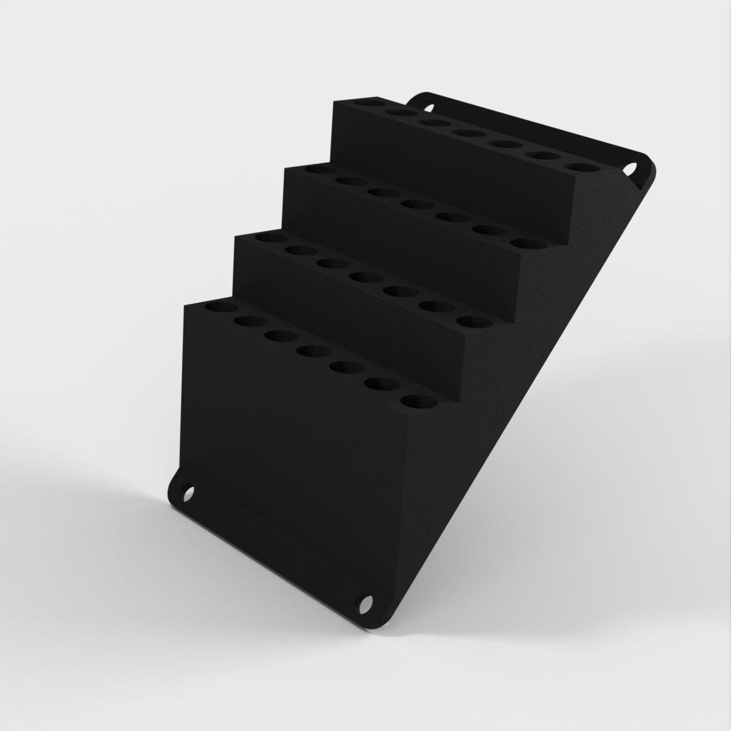 6.35mm (1/4") skruetrækker bit holder til montering på væggen. Produktet inkluderer en nedre række til længere bits, mens de resterende anvendes til almindelige korte bits. Dette gør det nemt at holde orden i dit værksted, skur eller arbejdskøretøj.