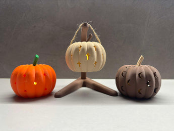 Græskarne er lette at lave med en 3D-printer, og du vil uden problemer kunne fjerne eventuelle støttestrukturer takket være det velovervejede design. De fås i flere farver og materialer, såsom beige, brun, grøn og orange PLA samt grøn PETG-HF, hvilket giver dig mulighed for at tilpasse din dekoration, så den passer til din stil.