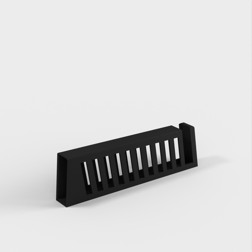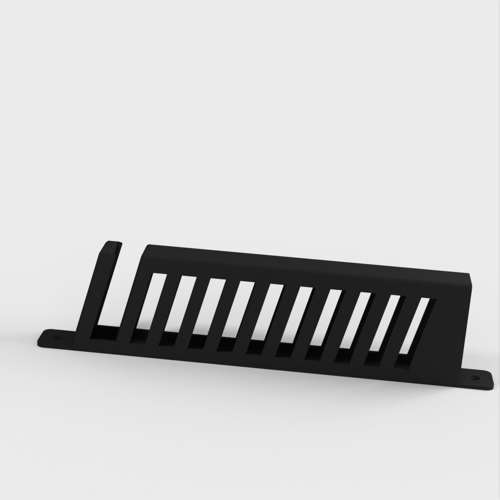 AA batteriholder er designet til at sikre dine AA batterier på en organiseret og sikker måde. Denne holder kan fastgøres på enhver overflade med dobbeltsidet tape, hvilket medfører nem installation, eller du kan også vælge at fastgøre det med skruer for ekstra stabilitet. Dette produkt sikrer nem adgang til batterier, når de er nødvendige og holder dem på et sikkert sted, når de ikke er i brug.