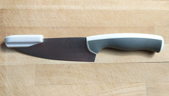 Oplev en praktisk løsning til at håndtere hårde fødevarer med dette aflæselige ekstra håndtag til din kniv. Dette design tilføjer et ekstra greb, så du nemt kan skære igennem isede eller hårde stykker mad, hvilket gør det ideelt til lettelse af madlavningsopgaver såsom nedskæring af frysevarer. Håndtaget installeres hurtigt ved at placere knivens spids i sporet og trykke let ned, hvilket sikrer en stabil pasform.