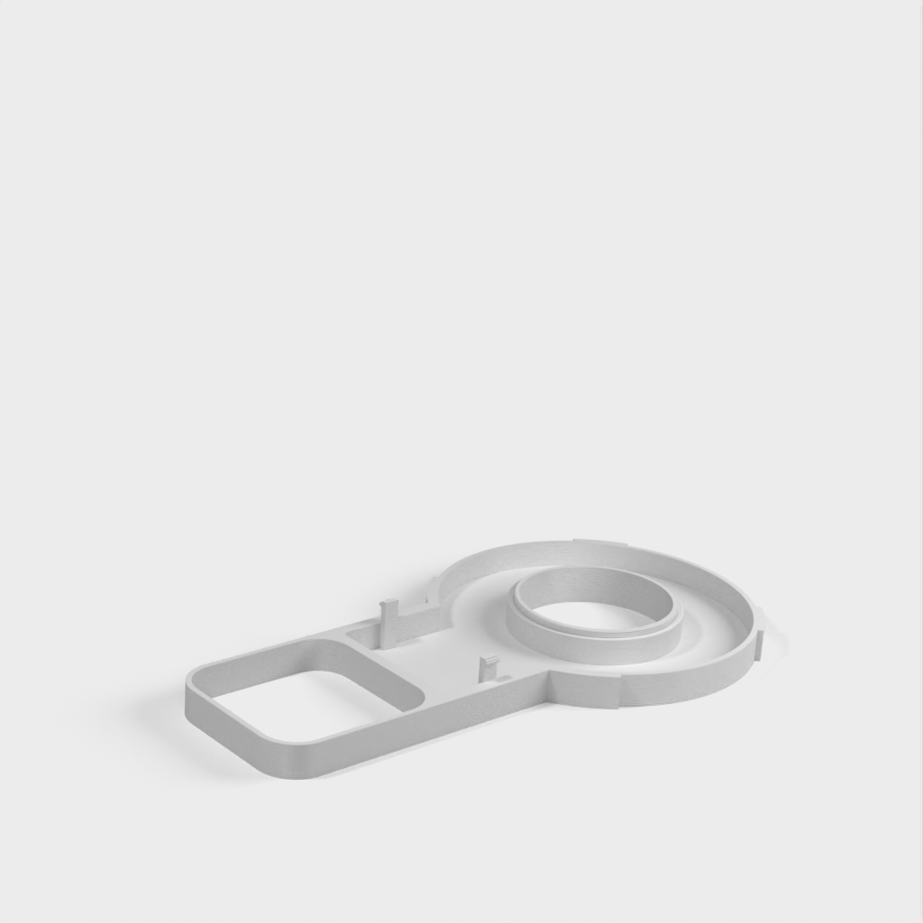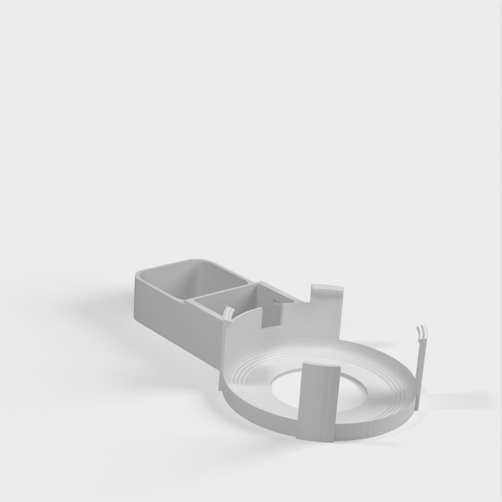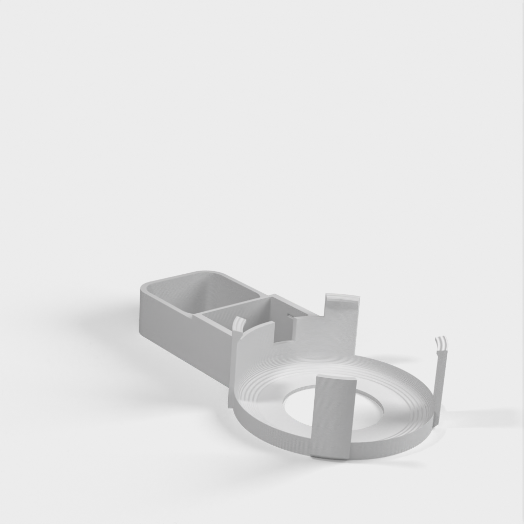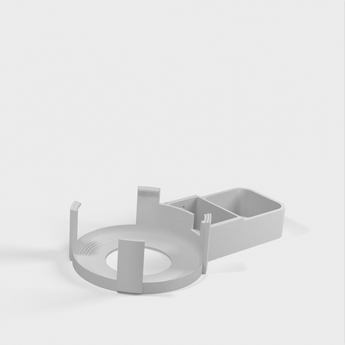 Beskrivelse af Amazon Echo Dot (3. generation) vægstikmontering. Denne montering er designet til at fastgøre din Echo Dot direkte til vægstikket, hvilket hjælper med at skjule ledningen og spare plads. Monteringen er designet til ikke at blokere højttalerne på din Echo Dot, hvilket sikrer optimal lydoplevelse. Ud over Echo Dot holderen, omfatter sættet en bunddel, der glider på undersiden af strømforsyningen og giver plads til vikling af ledningen rundt om et centralt 'kerne', en topdel der skubber ned over toppen af strømforsyningen og klikker fast på bunddelen, samt et cover til at dække området hvor kablet går ind i Echo Dot.