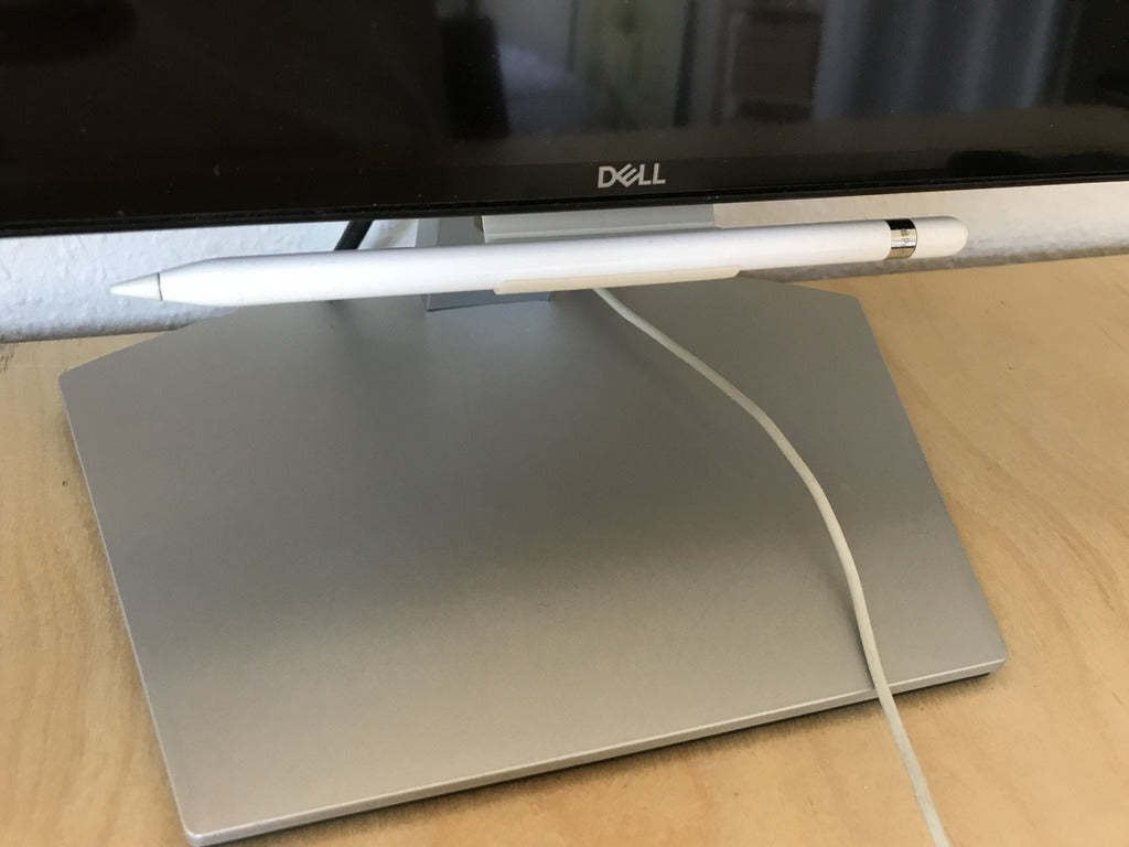 Dette er en lille holder til Apple Pencil, der nemt kan fastgøres til din computerskærm. Holderen sikrer, at din Apple Pencil altid er inden for rækkevidde og hjælper med at holde dit skrivebord organiseret. Bemærk, at pennen ligger i den printede del og ikke klikkes fast i den.