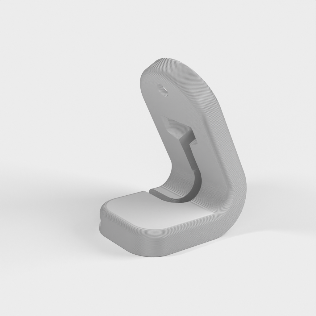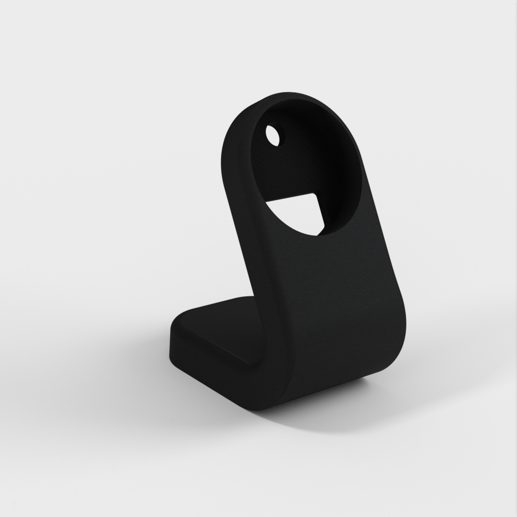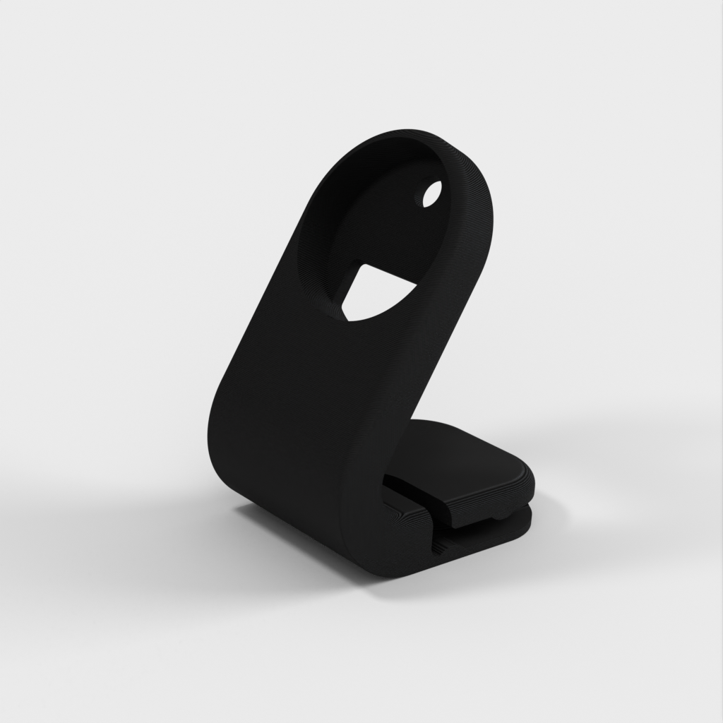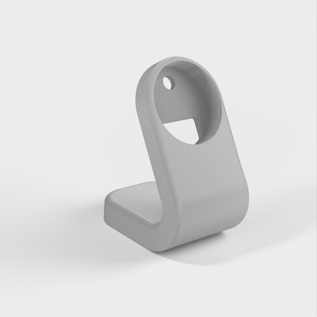 En simpel opladningsdock til Apple Watch, der kan fastgøres til væggen med dobbeltsidet tape. Docken giver dig en organiseret og praktisk måde at oplade dit Apple Watch på, mens det flot viser uret på væggen.