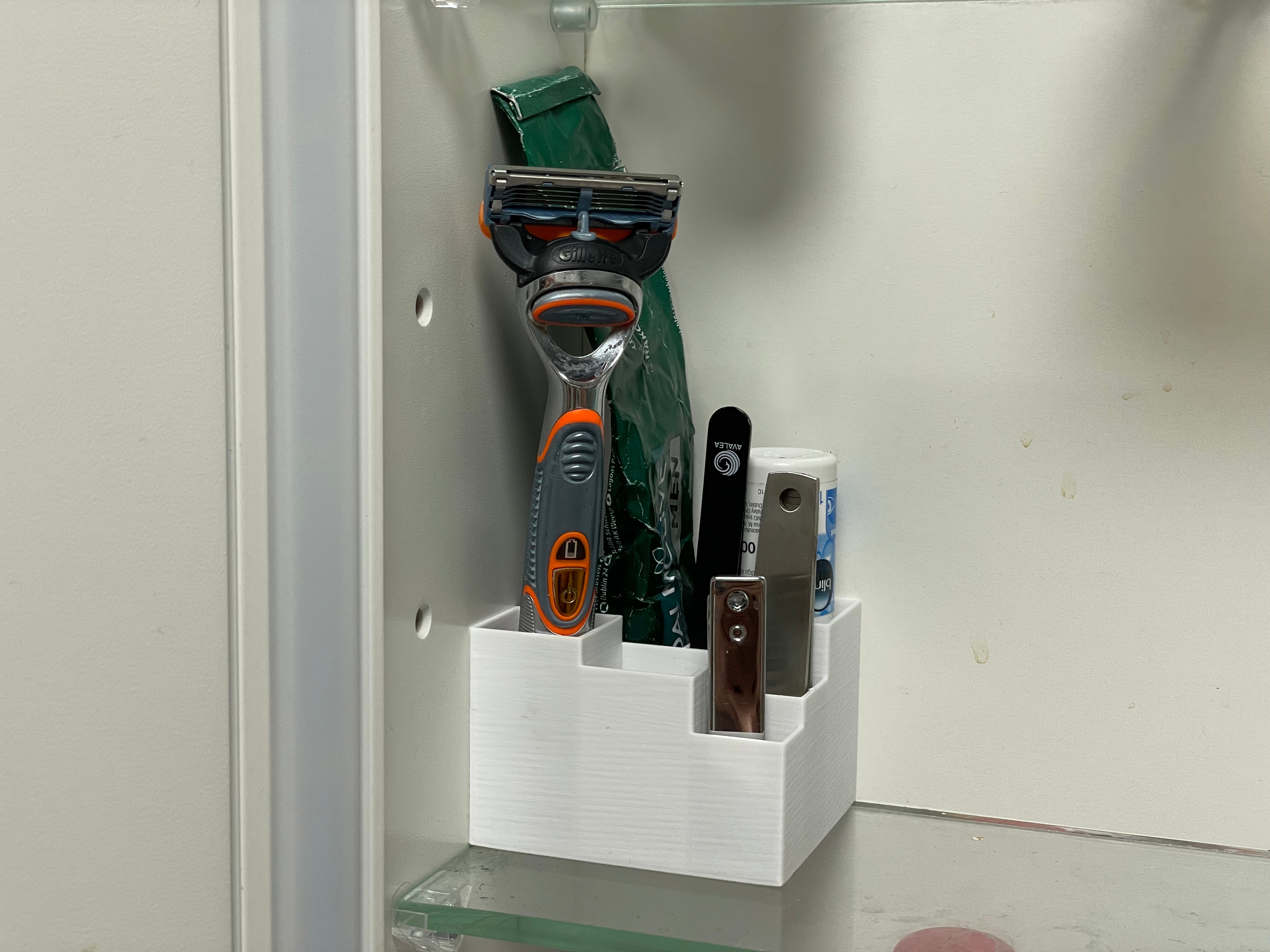 Et badeværelsesskab arrangør, der er ideel til at organisere dine toiletartikler, makeup og andre små genstande. Kan nemt monteres på væggen i badeværelset og kan bruges til at bevare orden og frie overflader.