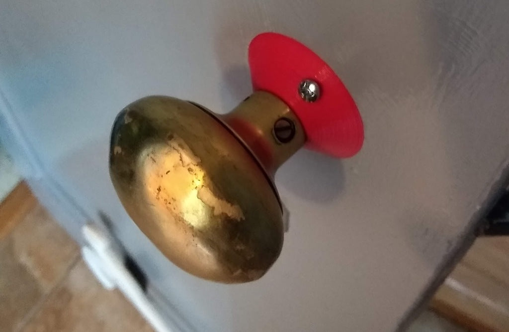 Dette er en simpel og funktionel roset til dørhåndtaget, designet til at stabilisere håndtaget for at forhindre slinger, når døren åbnes og lukkes. Perfekt for skabsdøre, hvor rosetten er gået tabt eller er blevet ødelagt.