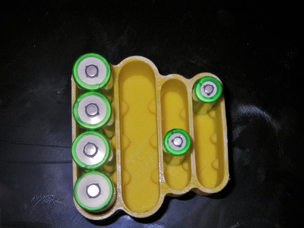 Hold dine batterier på plads med denne batteri holder. Den kan indeholde op til 8 AA batterier og 8 AAA batterier. Og version 2 af denne batteriholder har små huller i bundpladen, ellers er den identisk med den oprindelige version.
