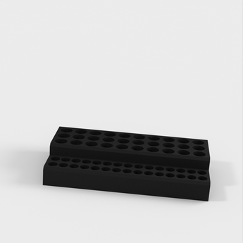 Dette er en batteriholder designet til effektiv og organiseret opbevaring af dine batterier. Når du køber batterier, kommer de ofte i akavede plastikbeholdere, hvilket gør det vanskeligt at få batterierne ud. Med denne batteriholder kan du holde op til 60 batterier samlet på ét sted. Den er pæn, kompakt og nem at opbevare i en skrivebordsskuffe.