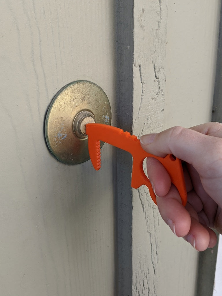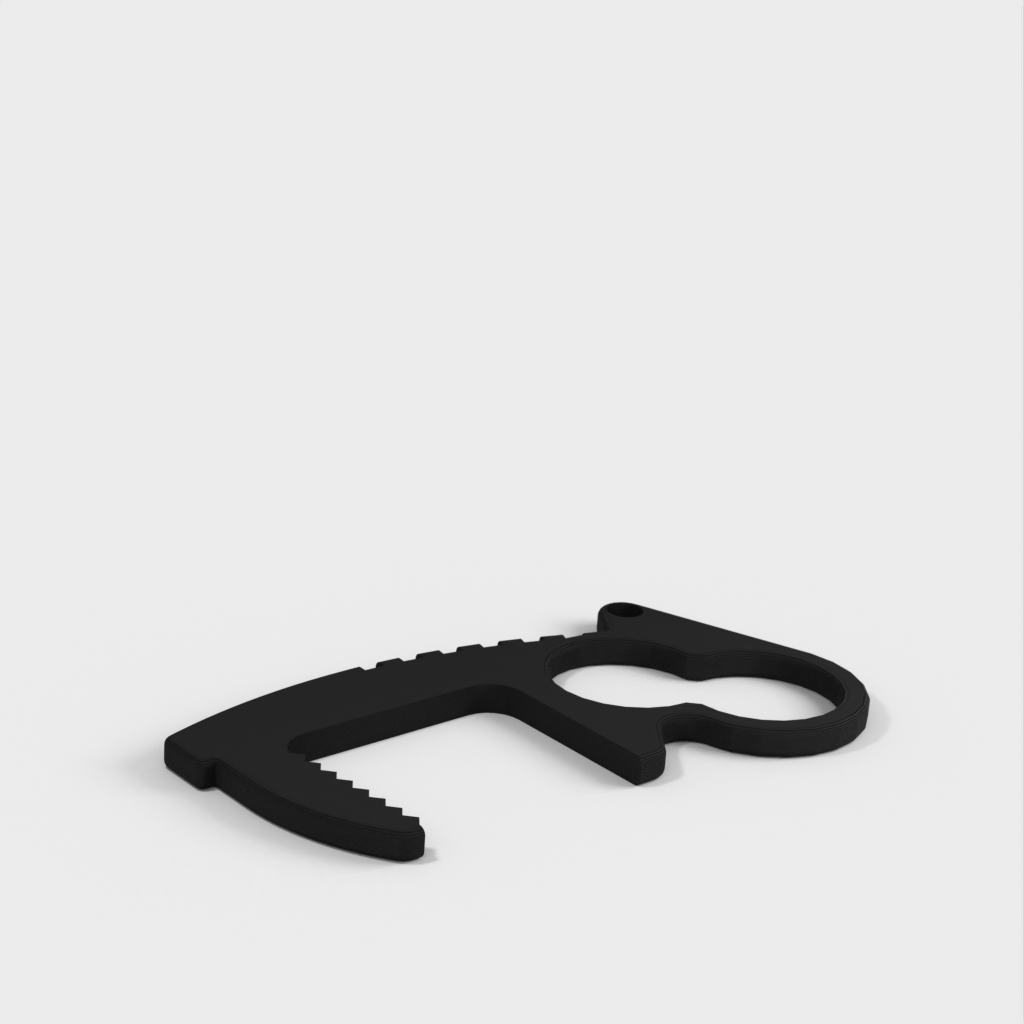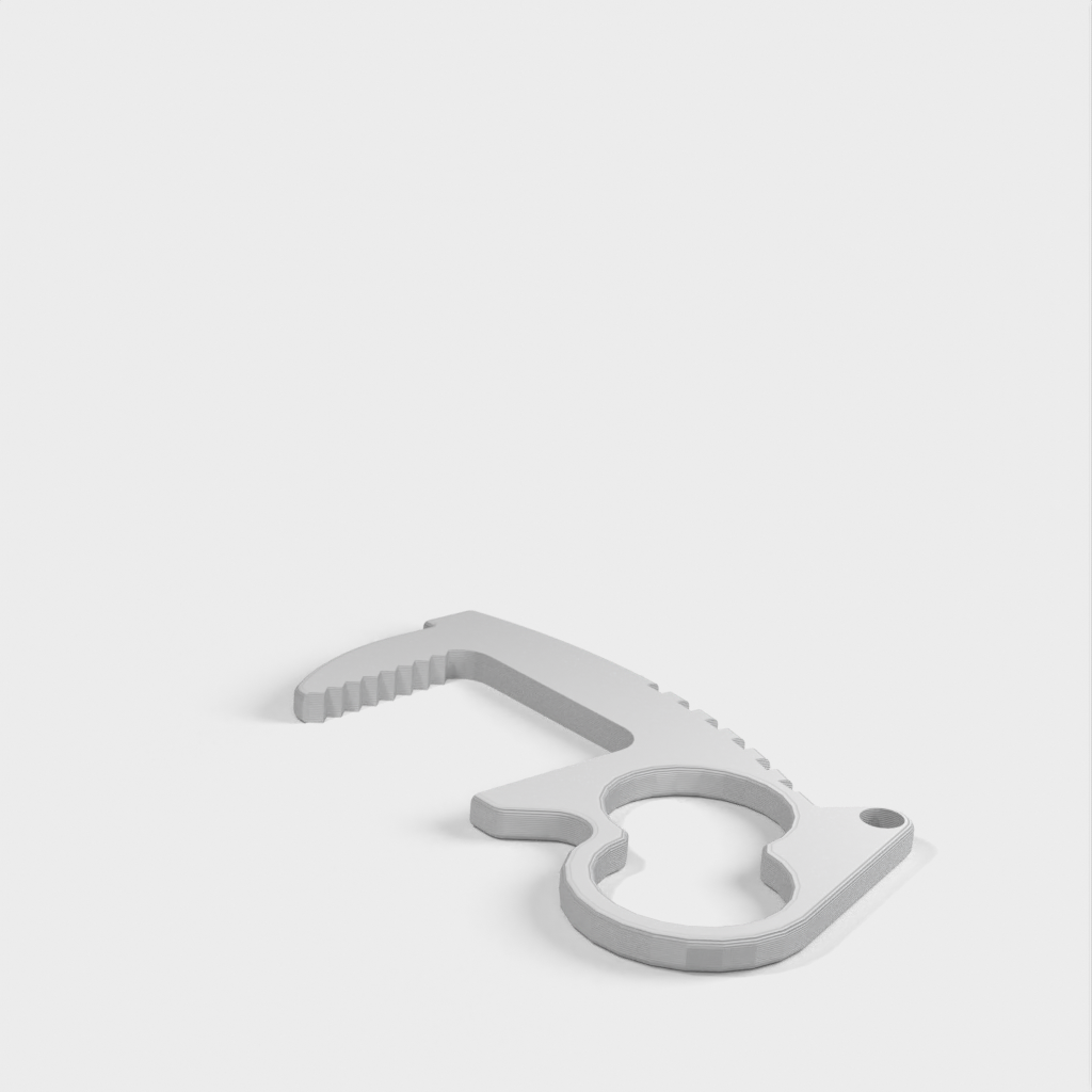 Undgå direkte kontakt med dørgreb, kontakter, tastaturer og mange andre genstande med denne berøringsfri døråbner-nøglering. Med sit unikke to hullers design giver det dig mulighed for at have fire forskellige grebstilarter. Top riste og tommelfingerhåndtag giver mere leverage end andre designs, mens den indvendige tandflade giver den nødvendige friktion for at være brugbar. Hver åbner vejer kun 4 gram, hvilket gør dem ideelle til nøgleringe, lommebrug, laptop tasker, uden at tilføje nogen mærkbar forskel i vægt. Nøgleringshullets placering er designet til at holde nøglerne sikkert i hånden og give øget leverage. Fungerer også godt i enden af et snoretræk.