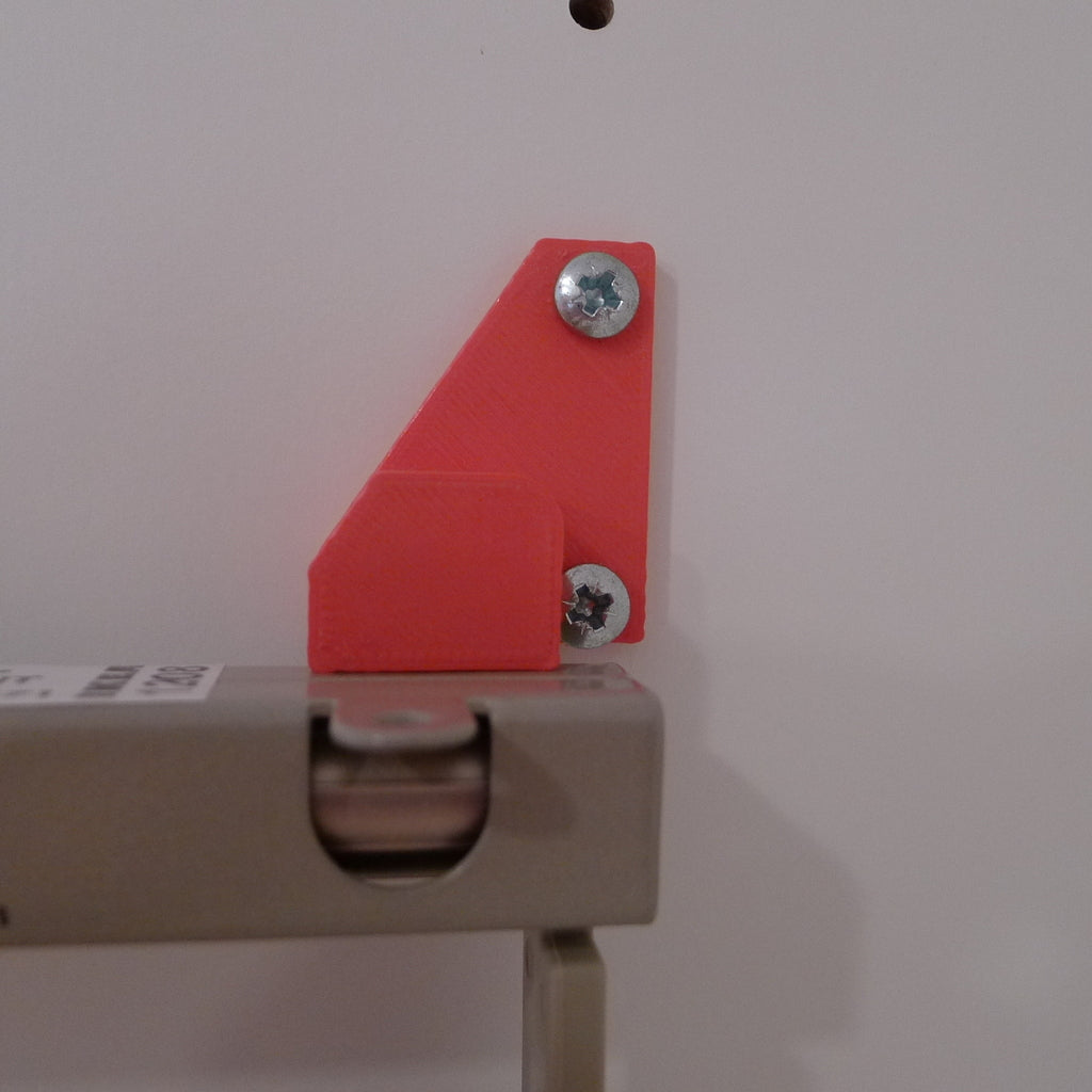 Braketter til IKEA PAX KOMPLEMENT pull-out tøjstativ. Disse braketter er designet til at tilpasse KOMPLEMENT-toget til 32mm hyldepindene på skabet. De bruges til at montere skinnerne på siden af kabinettet frem for bunden af en hylde. Dette giver en mere praktisk måde at organisere tøj på i dit PAX-system.