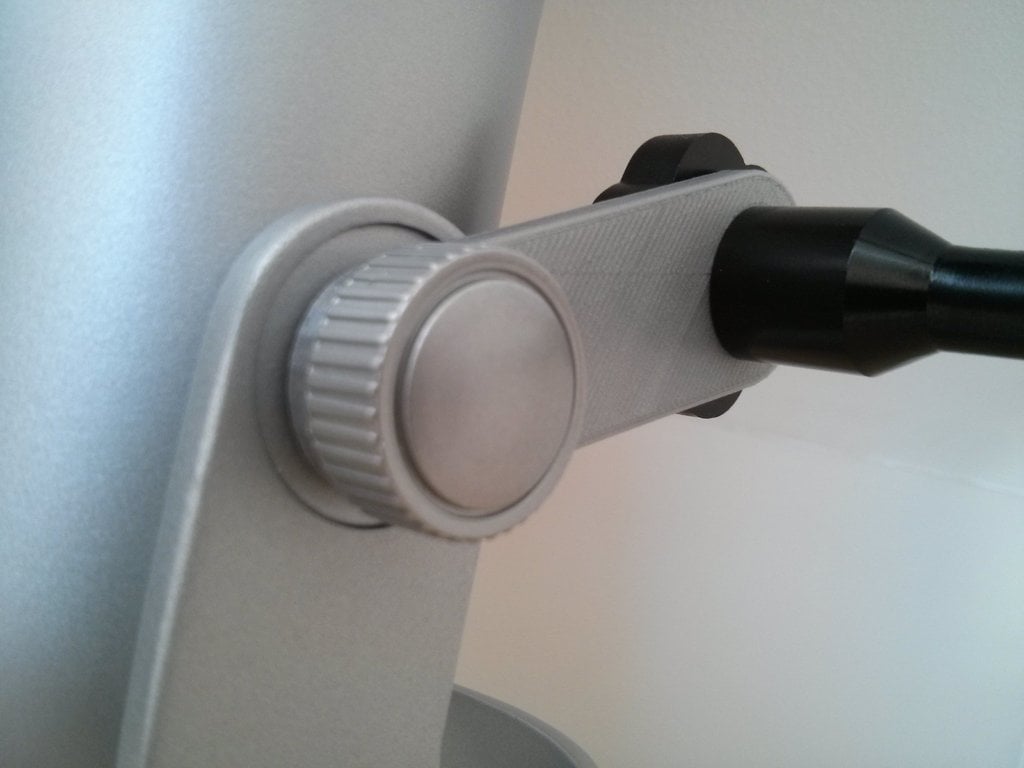 Beslaget til et Blue Yeti mikrofon popfilter gør det nemt at montere en standard popfilter på din Blue Yeti skrivebordsmikrofon. Popfiltrene er designet til at blive skruet på en normal mikrofonstand med et metalbeslag. Dette beslag erstatter det eksisterende og giver dig mulighed for at montere popfilteret direkte på din Blue Yeti mikrofon. Beslaget kan nemt fastgøres ved at skrue det fast. Vinklen kan også justeres ved at løsne bolten.