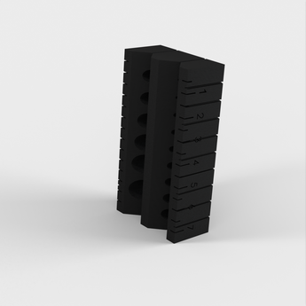 Dens design inkluderer 15 huller i almindelige borebitstørrelser fra 1 til 10 mm. Mærkningerne på siderne gør det nemt at sikre korrekt justering.