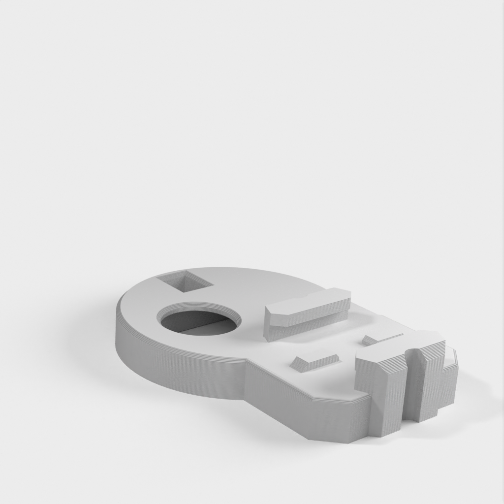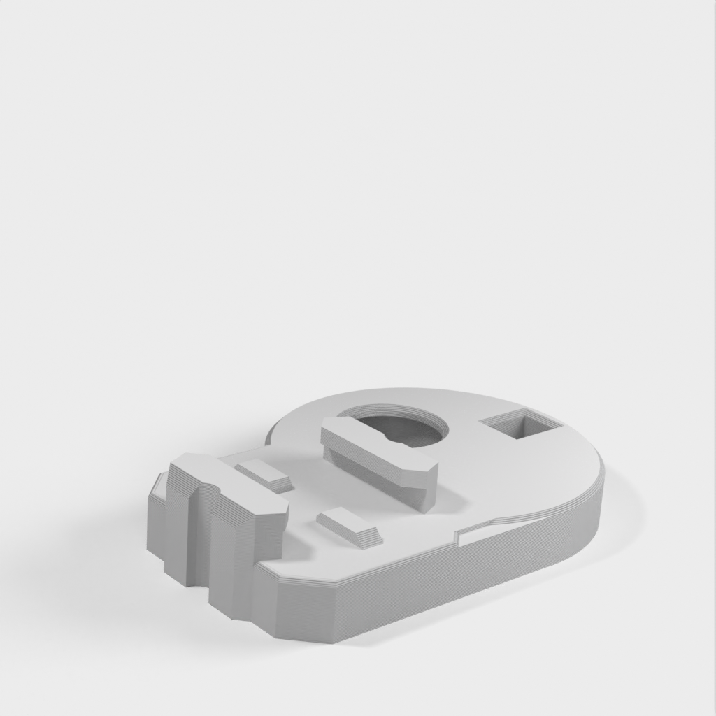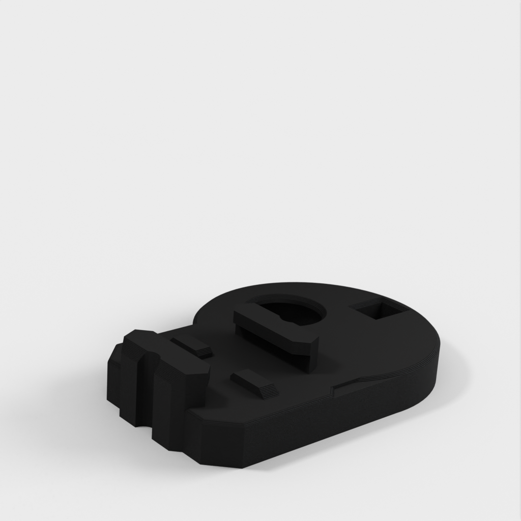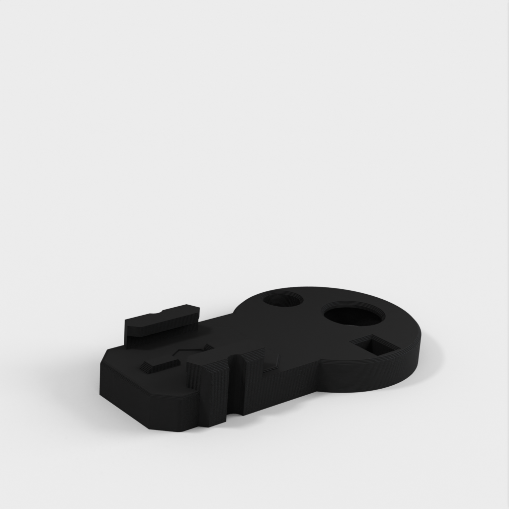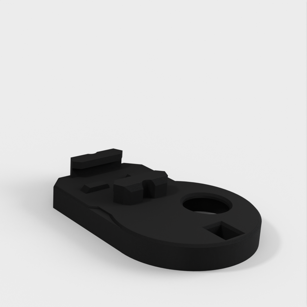 Dette er et beslag til et Blue Yeti-mikrofon, der giver mulighed for at montere et GoPro eller webcam ovenpå (eller faktisk nedenfor) mikrofonen. En ideel løsning for dem med en vertikal, stakket skærmopsætning, da det holder webcamet forhøjet og vender mod brugeren fra siden.